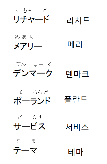 | 장음 표시 유무 | 히라가나를 이용한 후리가나 | 가타카나를 이용한 후리가나 |