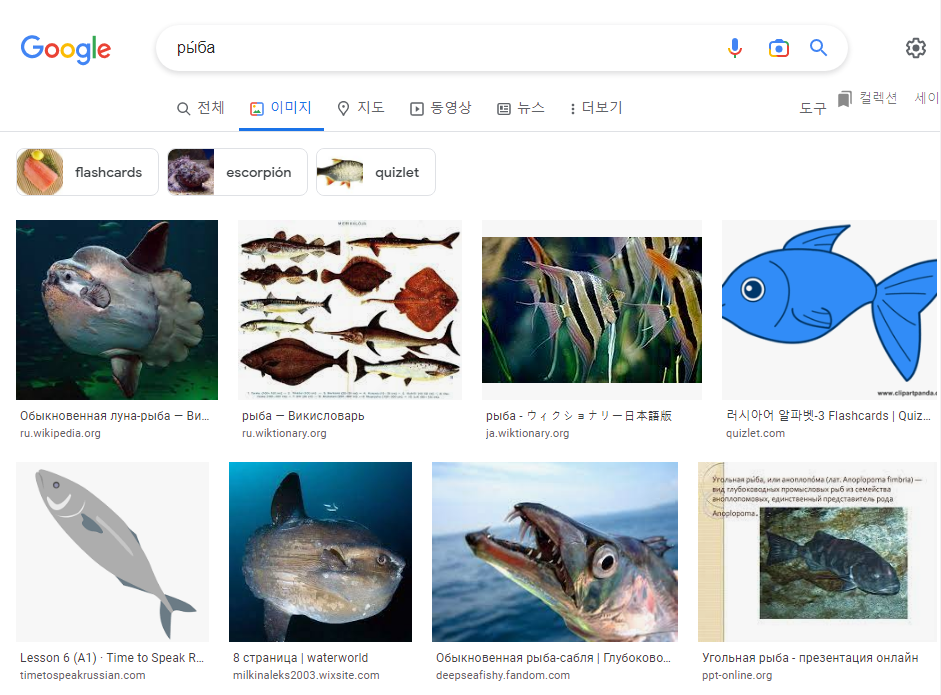 1-25. ры́ба(물고기, 생선)