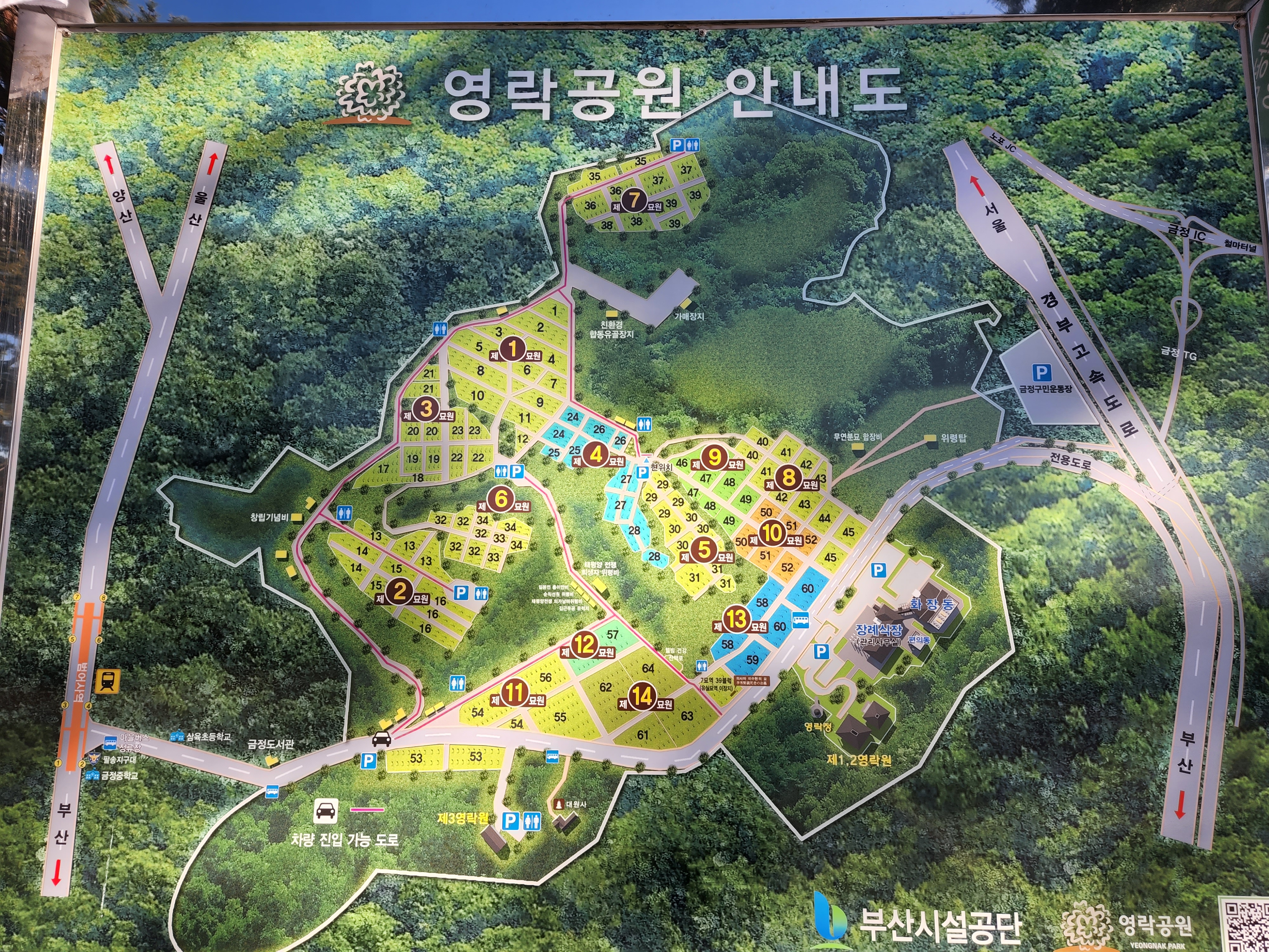 부산시설공단에서 제공하는 영락공원 안내도다. 영락공원은 보통 돌아가신 가족의 장지를 이곳으로 하거나 봉안했을 경우, 간간이 찾아오게 되는 곳이다. 영혼을 모시는 장소인 만큼, 일반인 말고도 다양한 사람들을 이곳에서 모시고 있는데, 오늘은 그곳들을 방문해 봤다. 사실 조금 무서웠다. 무덤도 많고, 햇빛은 들지만 추운 바람이 많이 불었으며, 몇몇 마른 나뭇가지와 풀들이 땅에 떨어져 한산한 느낌을 받았기 때문이다. 그럼에도 부산의 다양한 기념 시설을 알리기 위해 갔다.