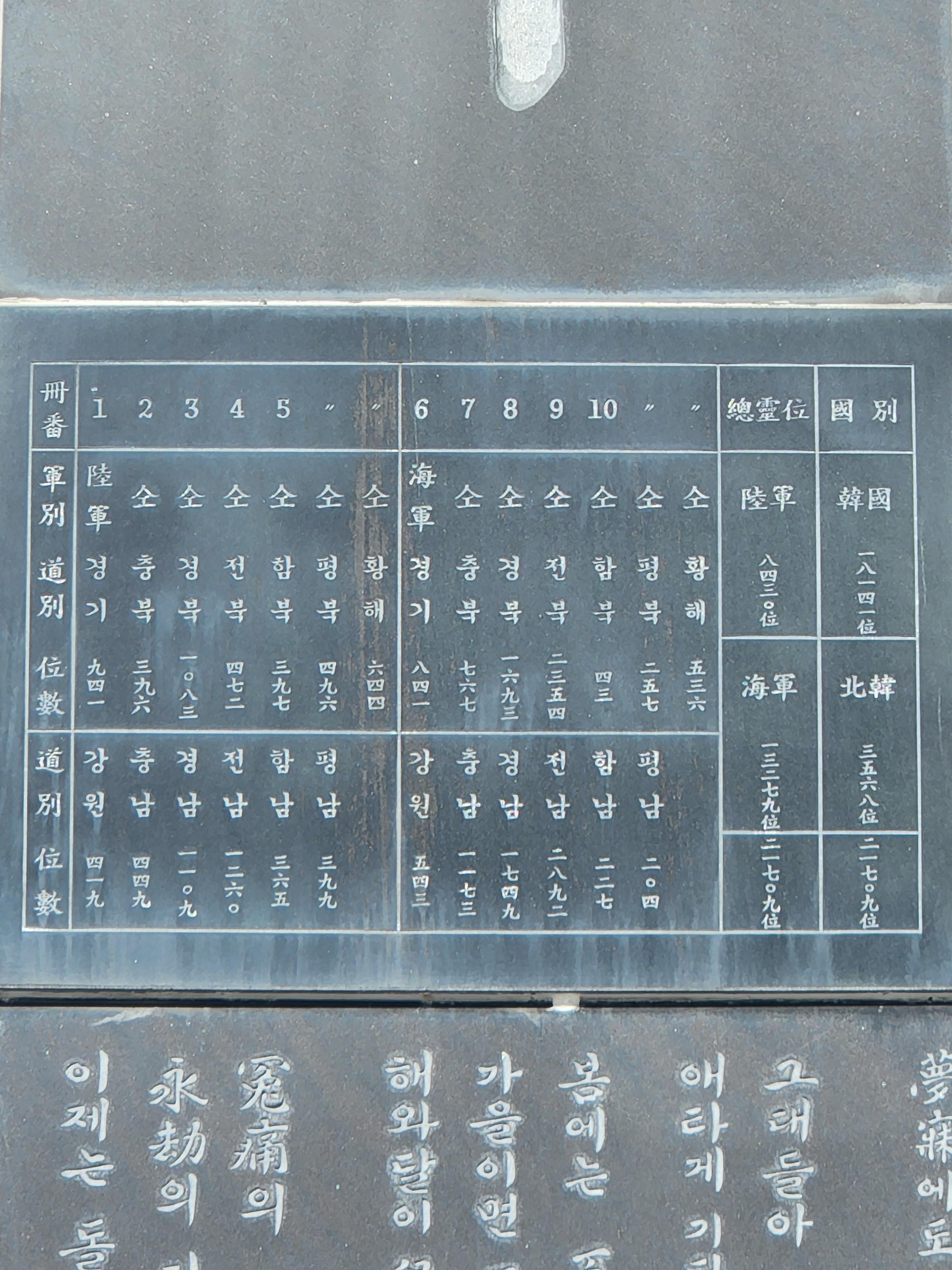 | 무명(無名)의 영령이시여 산자수명(山紫水明, 산빛이 곱고 강물이 맑음)한 이곳 영원(靈園)에 고이 잠드소서 |