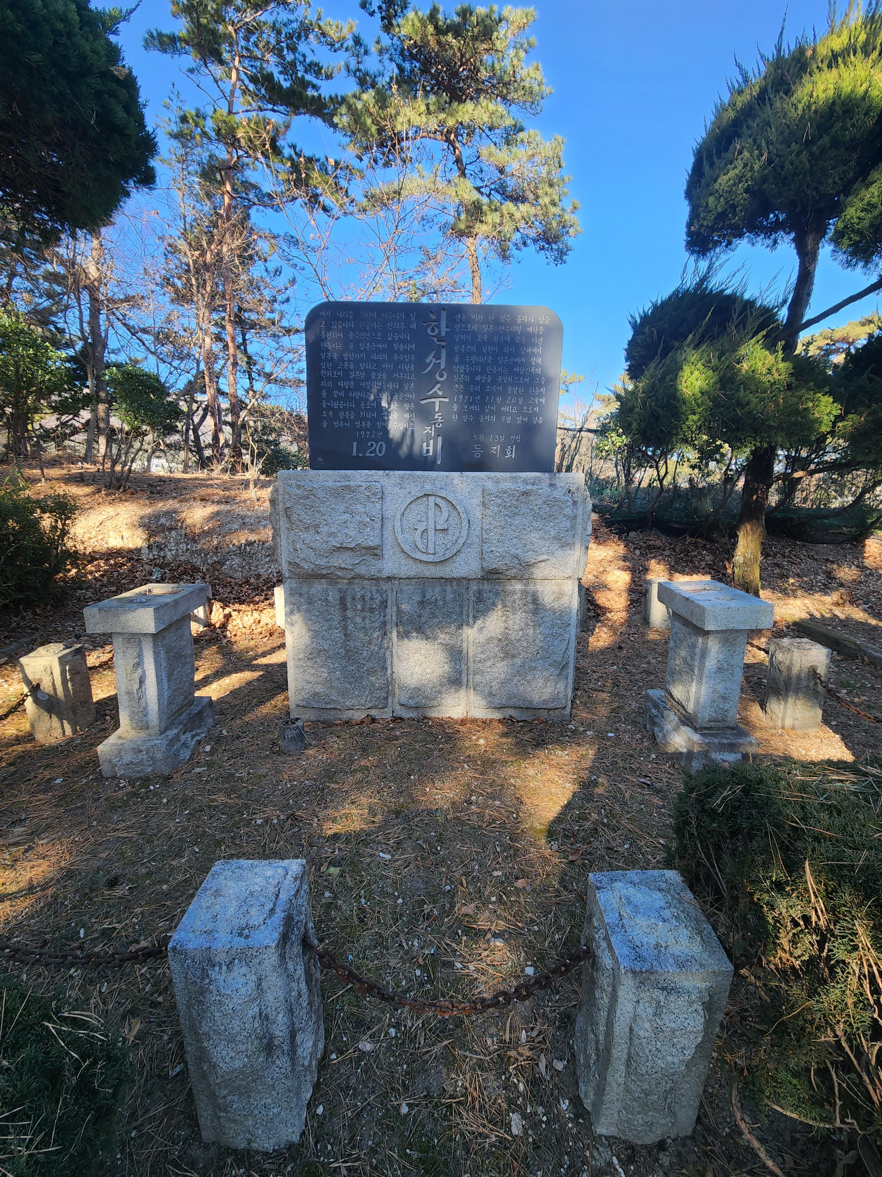 한성수 동지비 우측에는 길게 뻗은 창립기념비가 놓여 있다.