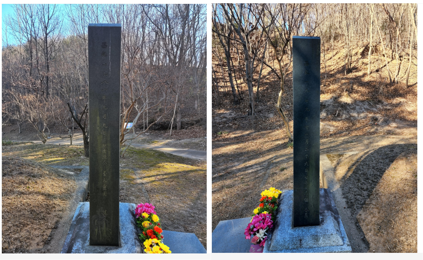 금정도서관 쪽에서 올라와 가장 좌측 길로 쭉 올라가면 제2묘원으로 가는 분기점과 매점이 나오는데, 그 매점의 좌측에 이렇게 3개의 비석이 있다.