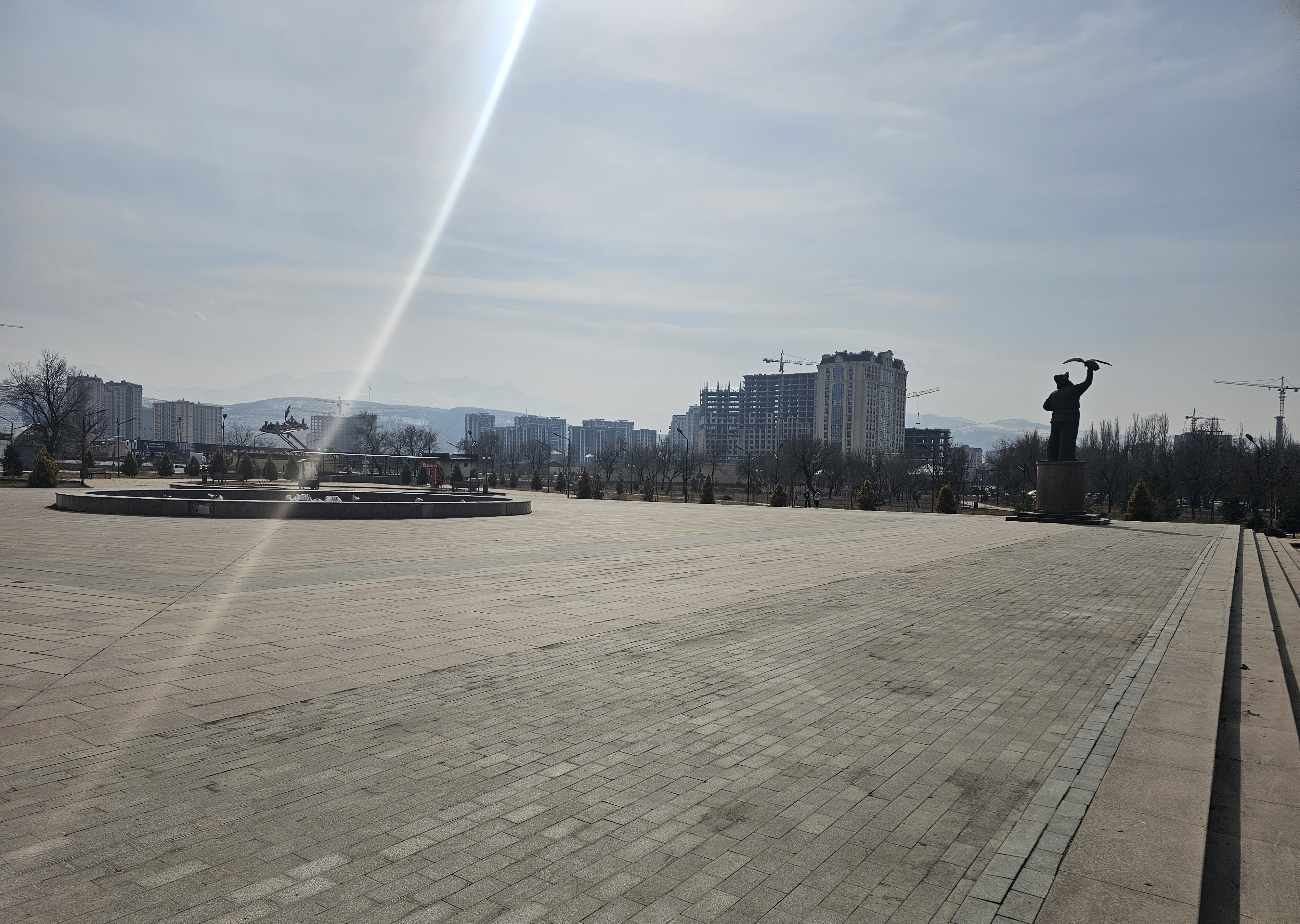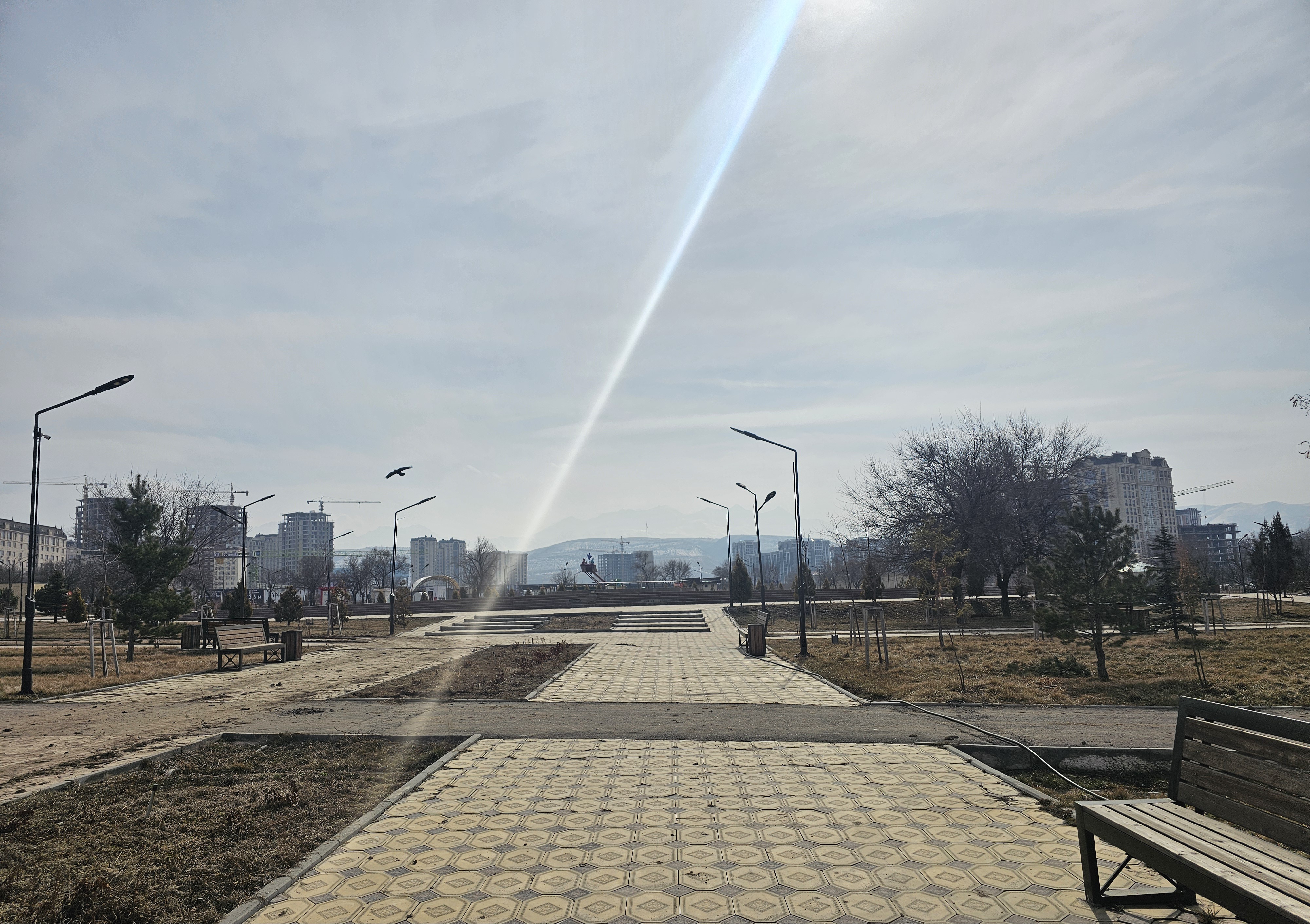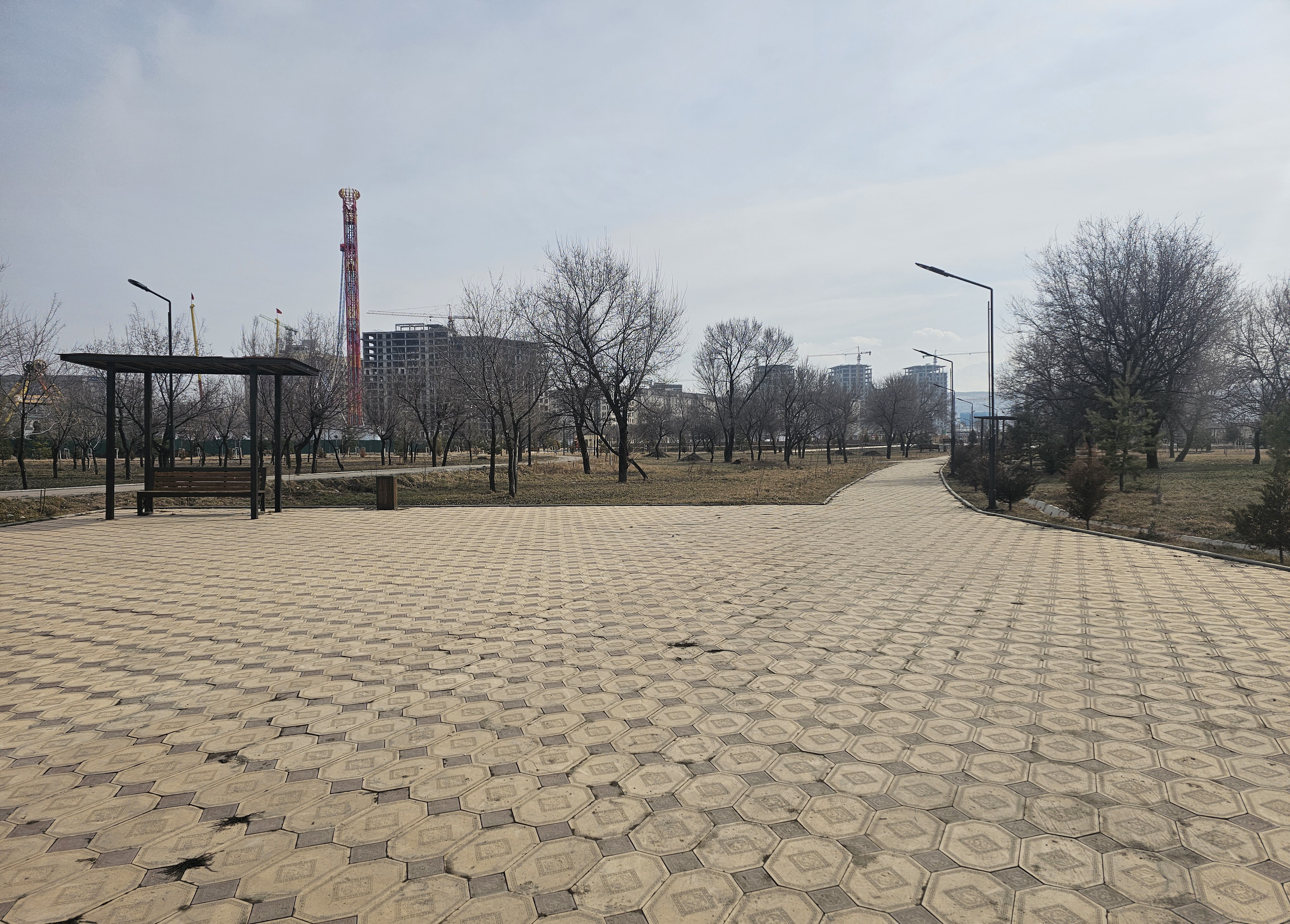 바이틱바티르가나이우울루공원(Парк им. Байтик баатыра Канай уулу)에는 막 봄이 되기 직전이라 가지가 있는 나무들만 보입니다.