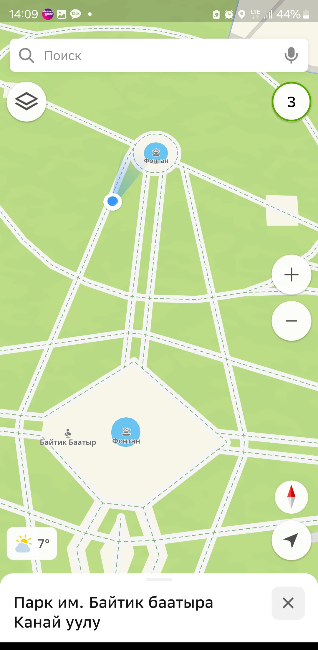 영웅 바이틱 동상에서 조금 서쪽으로 나오면 바이틱바티르가나이우울루공원의 입구가 나옵니다.