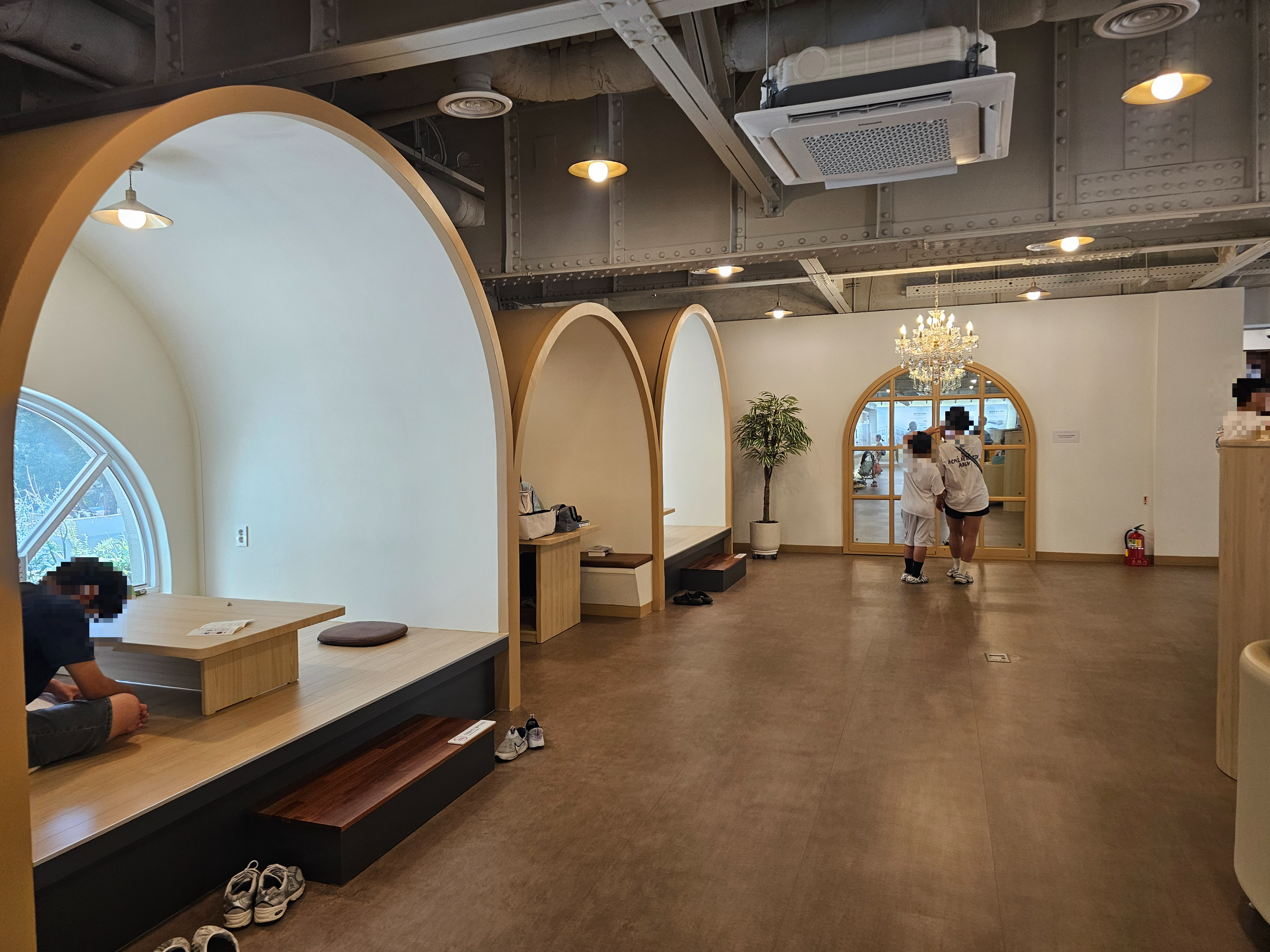 2층 대청마루에는 테이블, 의자, 쉼터과 함께 책을 읽으면서 쉴 수 있는 공간이 마련되어 있습니다. 분위기 있는 휴식공간이 아늑해서 좋았습니다.