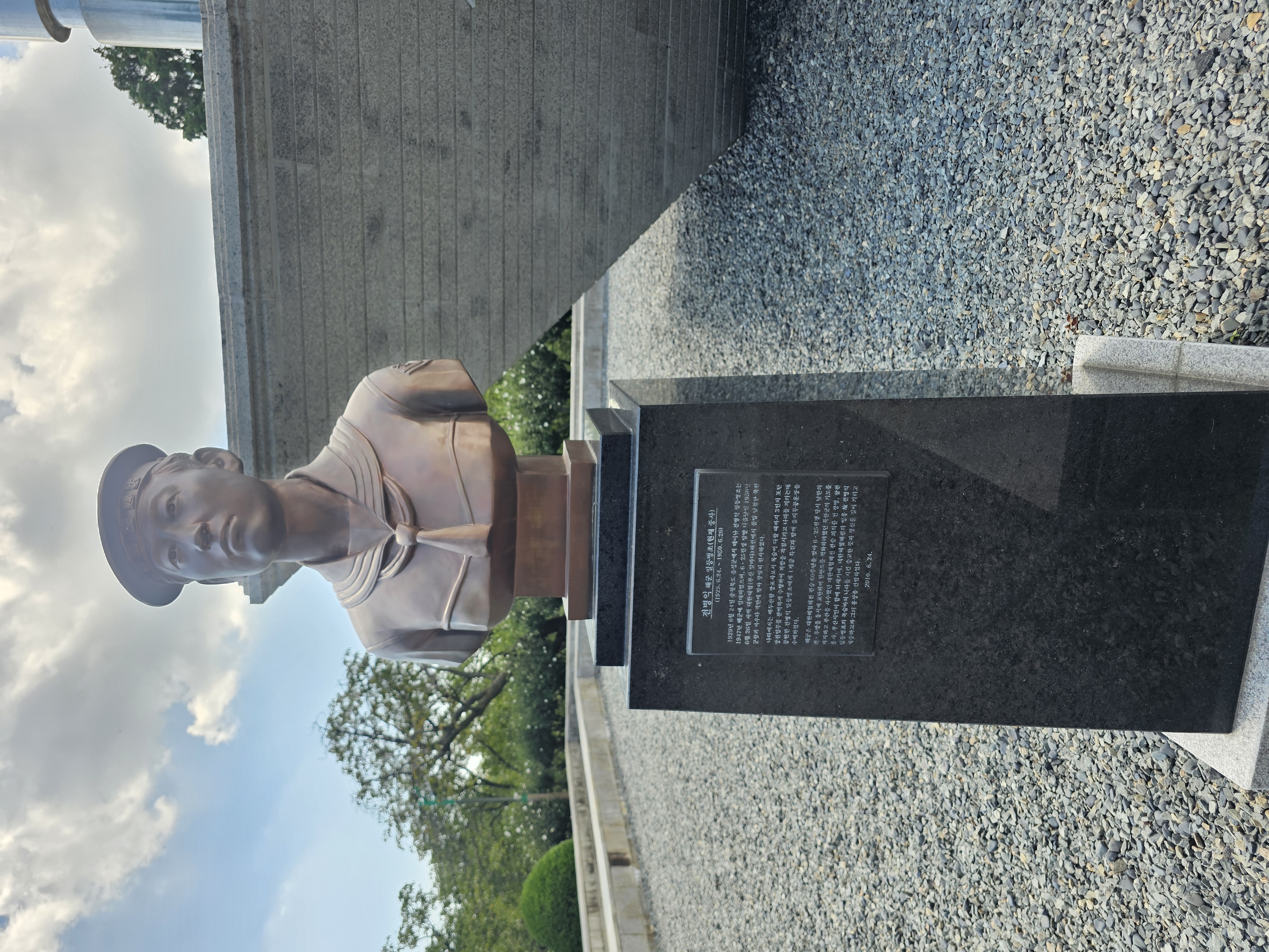 | 1929년 6월 24일 충청북도 음성군에서 태어난 전병익 일등병조는 1947년 해군에 입대하였으며, 6.25전쟁 발발 다음날인 1950년 6월 26일 새벽 대한해협(부산 앞바다) 해전에서 불법 남침한 북한 군함과 싸우다 적탄에 맞아 장렬히 전사하였다. 나라에서는 백두산함 장포사로서 목숨이 다할 때까지 3인치 포탄 장전임무를 완벽하게 수행하여 적함을 격침시키고 나라를 지키는데 공헌한 전병익 일등병조에게 1계급 특전과 함께 을지무공훈장을 수여하였다. 해군은 대한해협 전승 60주년을 맞아 6.25전쟁 당시 남한의 전후방을 동시에 교란하여 한반도를 적화하려했던 북한군의 기도를 저지하고 부산을 사수했던 대한해협해전 전승 의의를 전 장병, 참전용사, 부산시민이 함께 되새기며, 대한해협해전의 영웅 고 전병익 일등병조의 목숨바쳐 나라를 지킨 숭고한 뜻과 정신을 길이 기리고 계승하고자 그의 흉상을 건립하였다. |