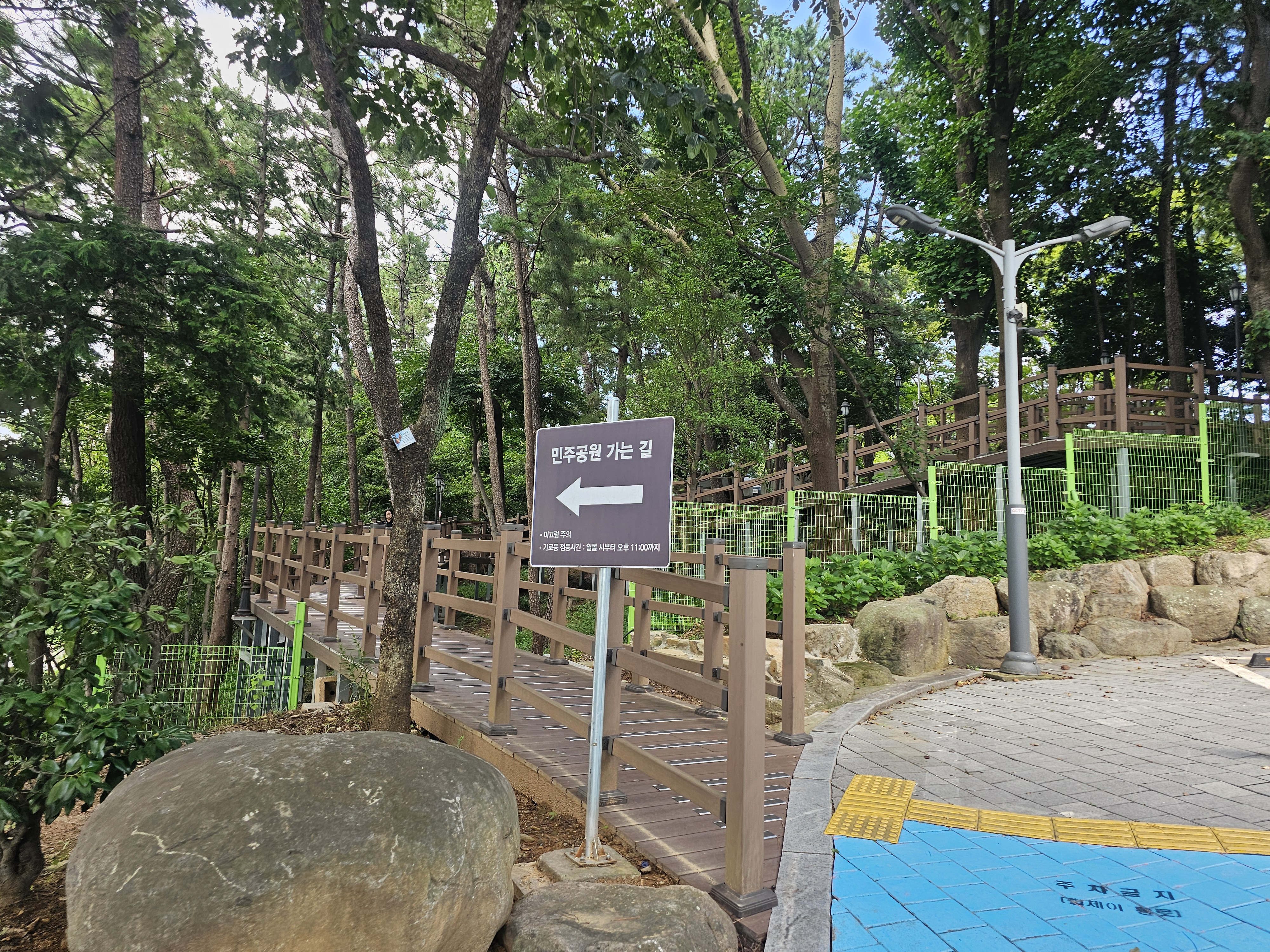 일몰부터 오후 11시가지 가로등이 켜지게 되는 중앙도서관에서 민주공원으로 가는 나무데크길을 따라 갑니다.