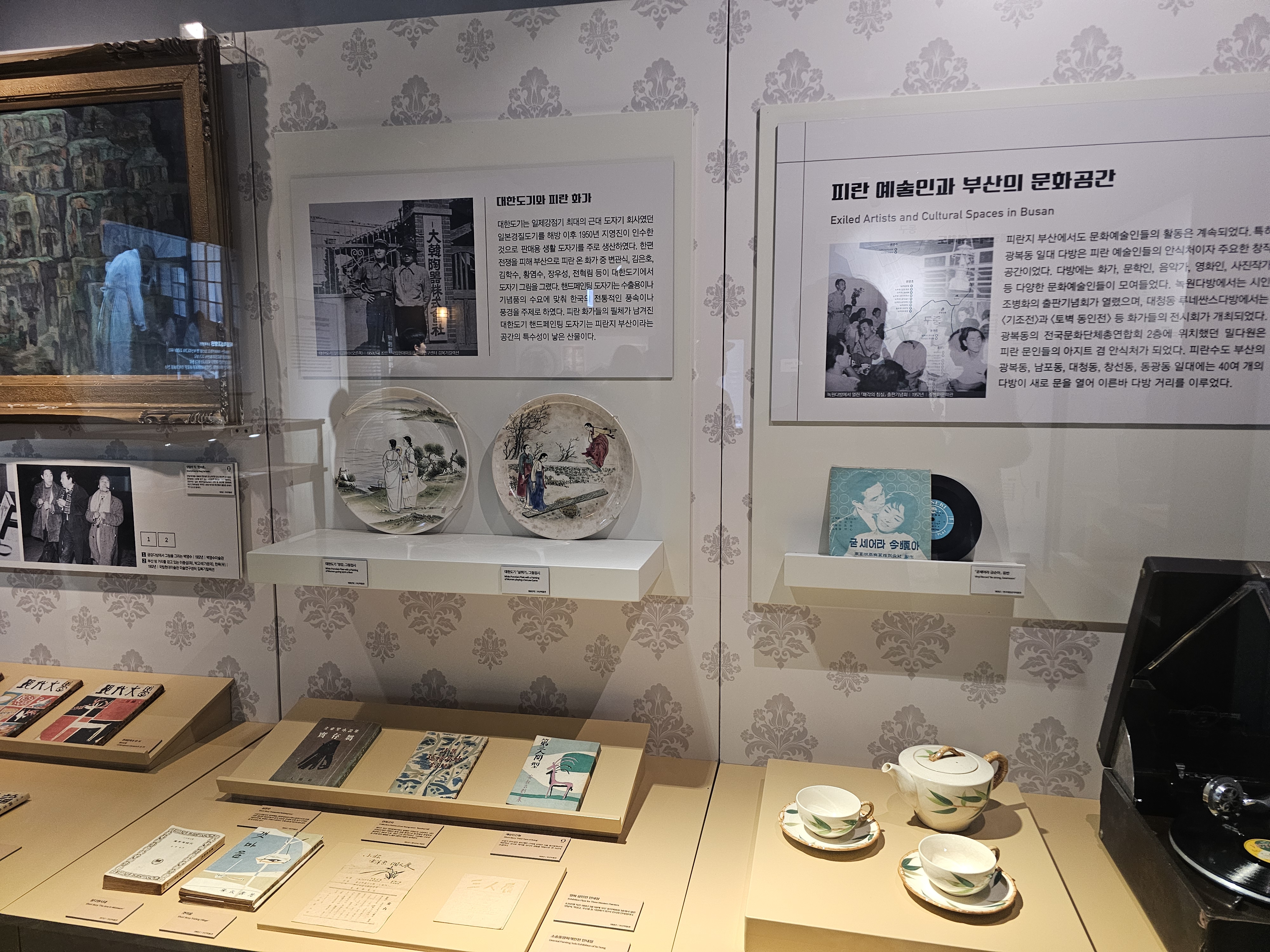 한국전쟁 당시 많은 피란 예술인들이 특히 광복동 일대 다방에서 모여 부산 르네상스(Busan Renaissance, 1945~1975)가 널리 펼쳐집니다. 이 부산 르네상스 시절 다양한 노래도 나왔지만 일본경질도기에서 유래한 대한도기의 핸드페인팅 도자기도 유명했죠.