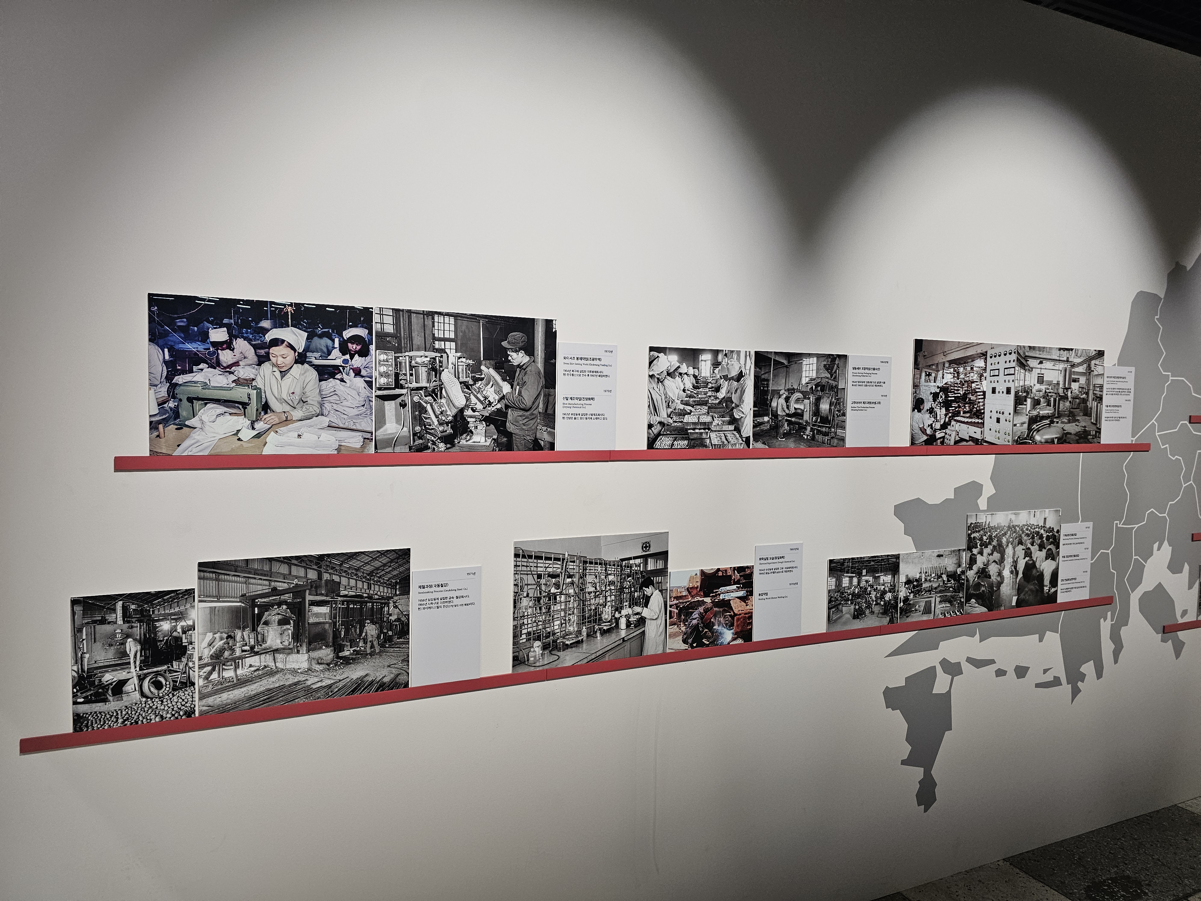 남성들은 주로 철강산업, 공산품산업, 조선업 등에서 일을 했고, 여공이라고 불렸던 여성들은 신발사업이나 방직사업 공장에서 일을 하며 부산의 경제성장을 이끌어냅니다.