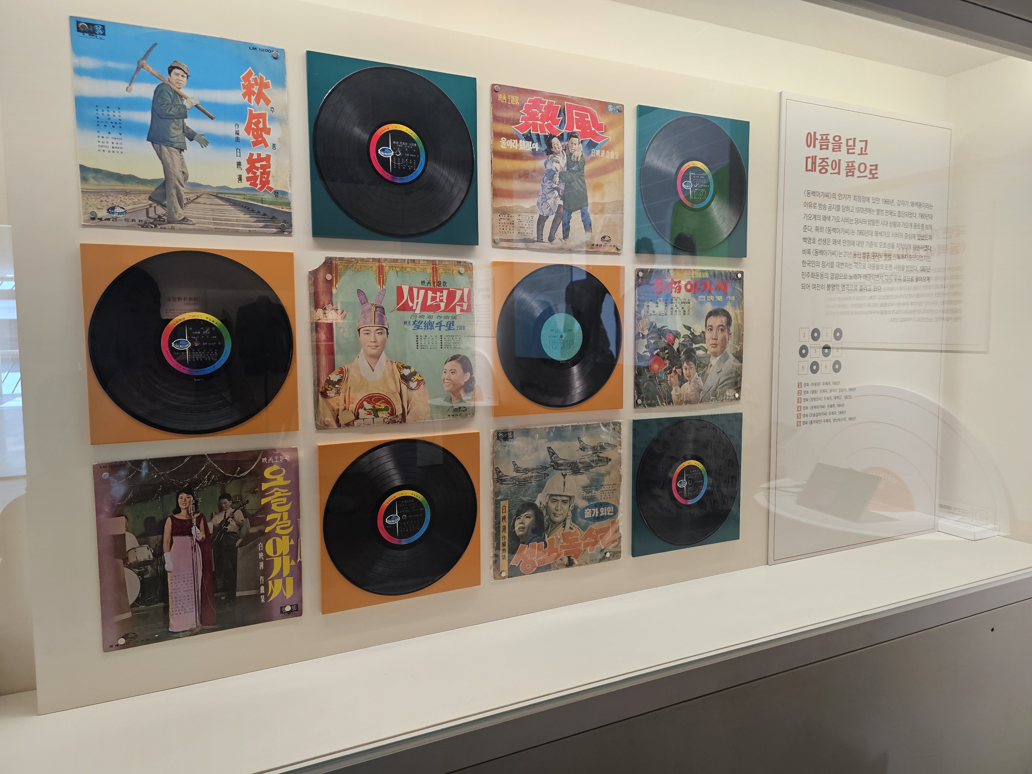 <동백아가씨>, <울어라 열풍아> , <새벽길>, <성난독수리>를 포함한 100여 곡의 히트곡과 3200여 곡의 작품을 발표한 부산 출신의 대중음악작곡가인 거장 백영호(白映湖, 1920-2003)의 다양한 작품과 그가 썼던 옷과 악기도 마지막으로 볼 수 있었습니다.