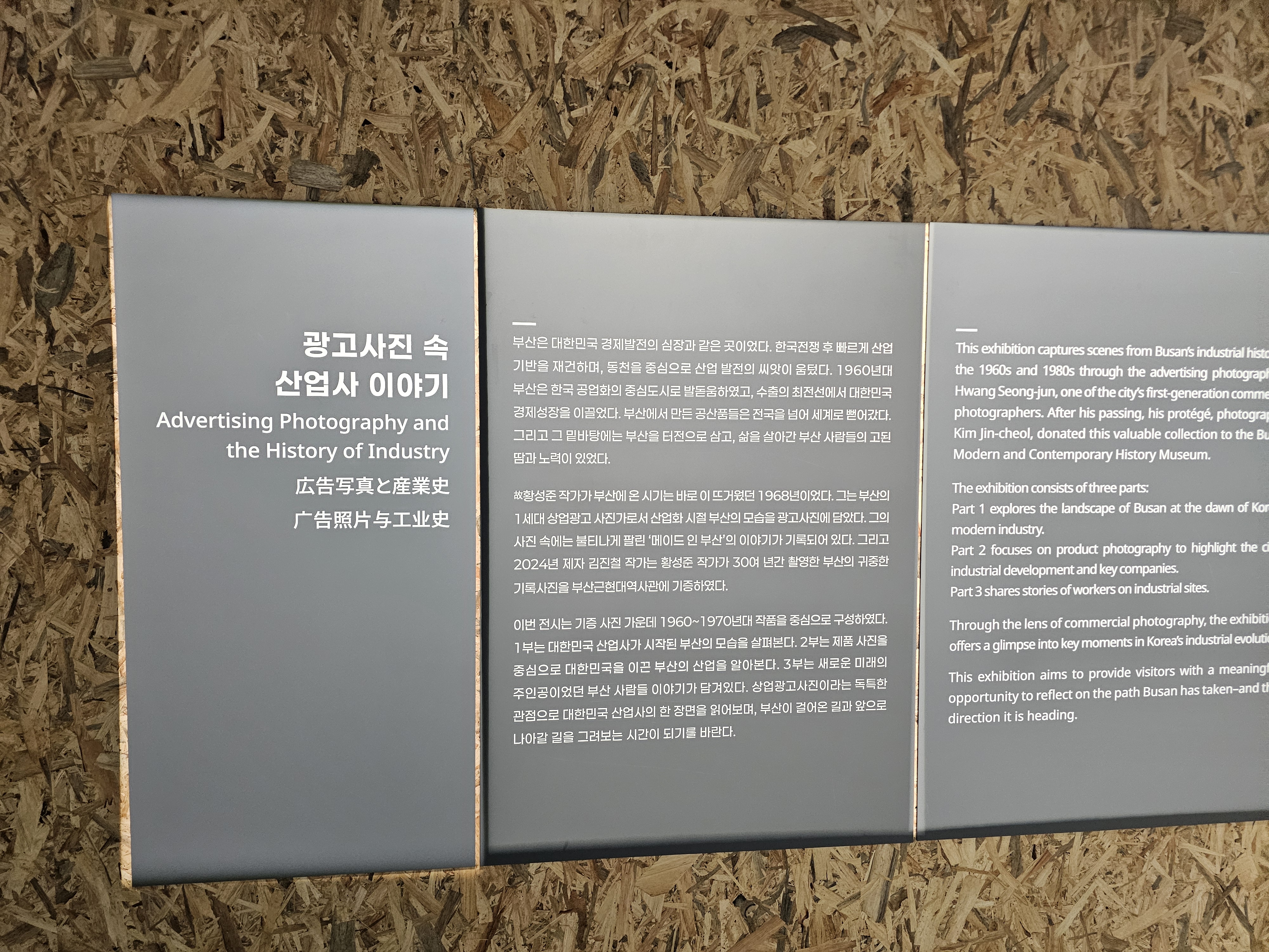 대한민국의 경제발전의 심장같은 부산은 한국전쟁 이후 빠르게 산업기반을 재건하여, 동천을 중심으로 산업 발전의 씨앗이 움텄습니다. 그렇게 1960년대 부산은 한국 공업화의 중심도시로 발돋움했고, 수출의 최전선에서 경제성장을 이끌었습니다. 이 모습은 부산 1세대 상업광고 사진가 황성준 작가의 사진에서 확인할 수 있는데요. 그가 30여 년간 촬영한 부산의 귀중한 기록사진을 제자 김진철 작가가 부산근현대역사관에 기증하면서 이번 전시가 열릴 수 있었다고 합니다.
