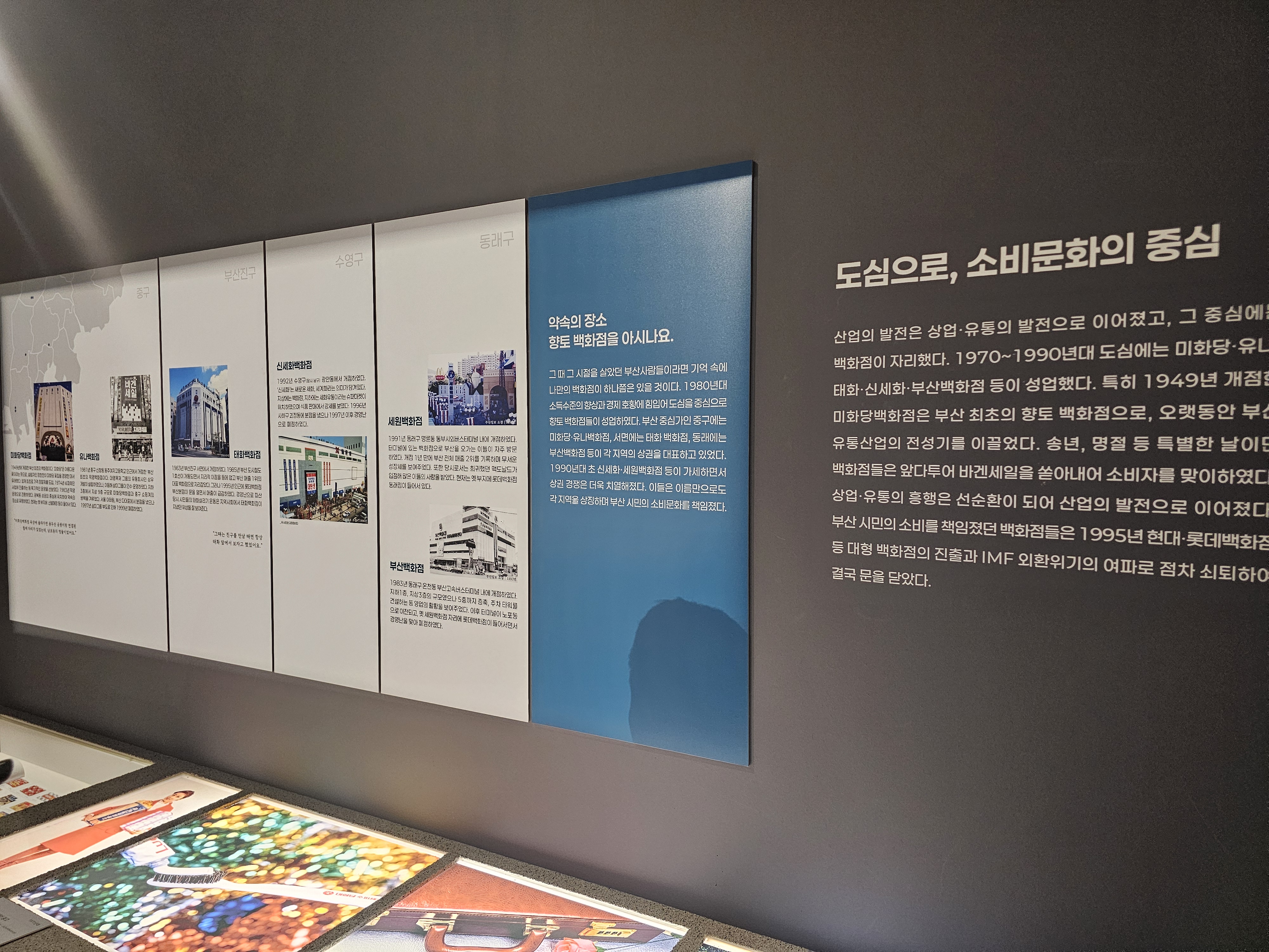 그러나 1995년 현대백화점과 롯대화점 등 대형 백화점의 진출과 IMF 외환위기의 여파로 향토백화점의 시대는 막을 내리고, 지금은 롯데백화점, 신세계백화점, NC백화점 등 대형백화점의 시대로 접어들면서 부산백화점산업이 재편되어 지역 상권의 중심축을 담당하게 됩니다.