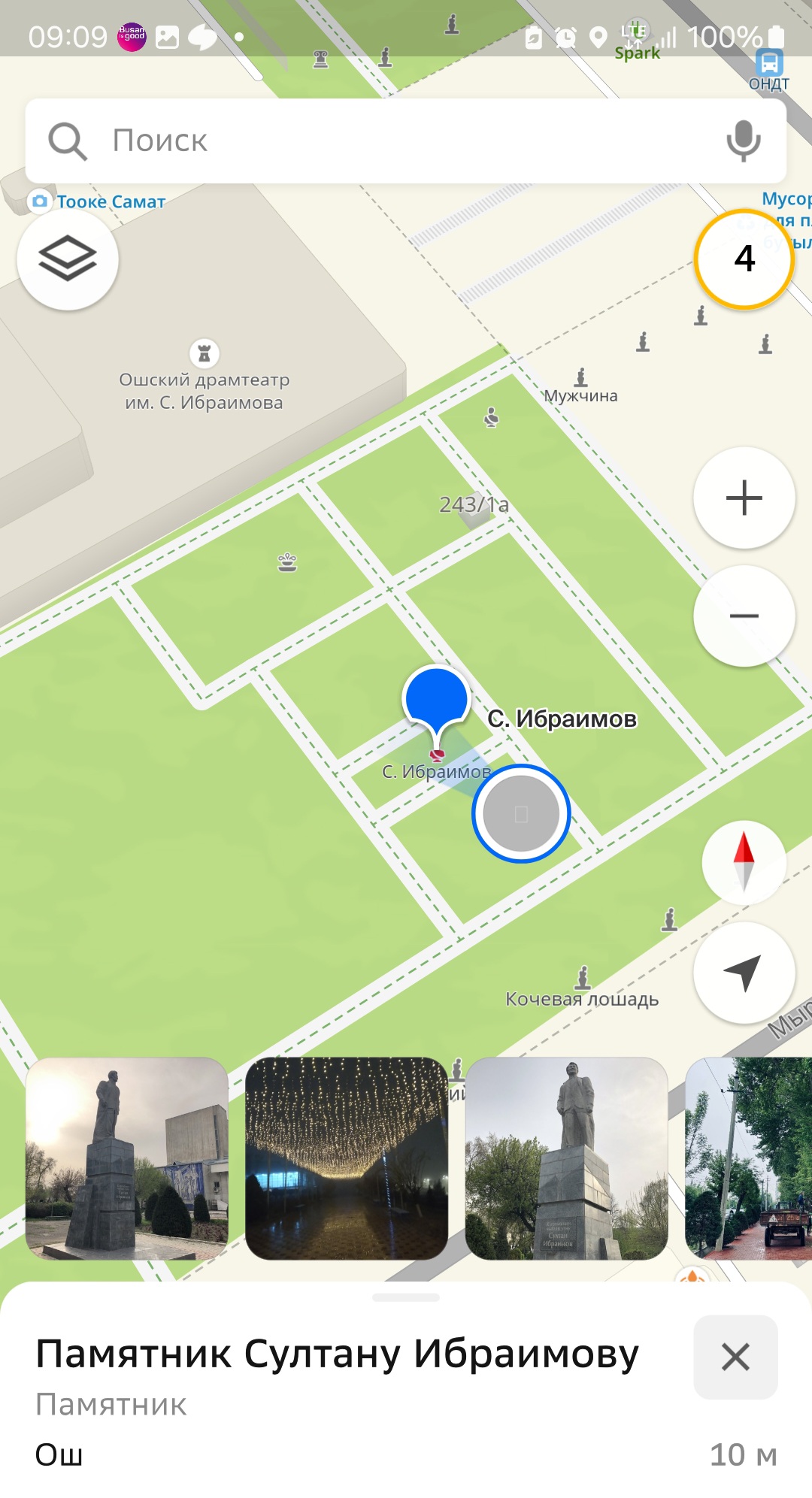 키르기스스탄 오시의 С. 이브라이모프 국립드라마극장(Национальный драматический театр им. С. Ибраимова) 바로 동남쪽에 술탄 이브라이모비치 이브라이모프(Султан Ибраимович Ибраимов, 1927-1980)의 기념상이 세워져 있습니다.