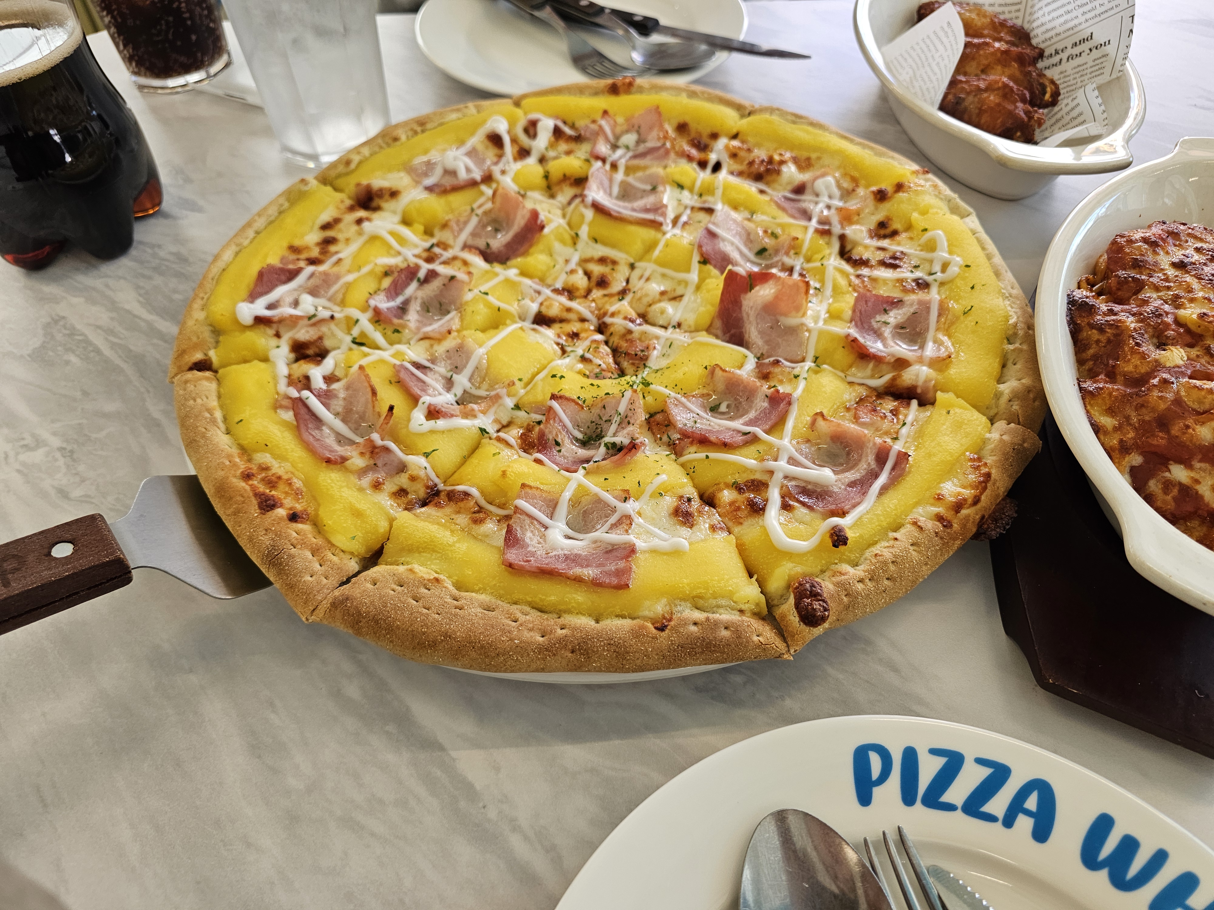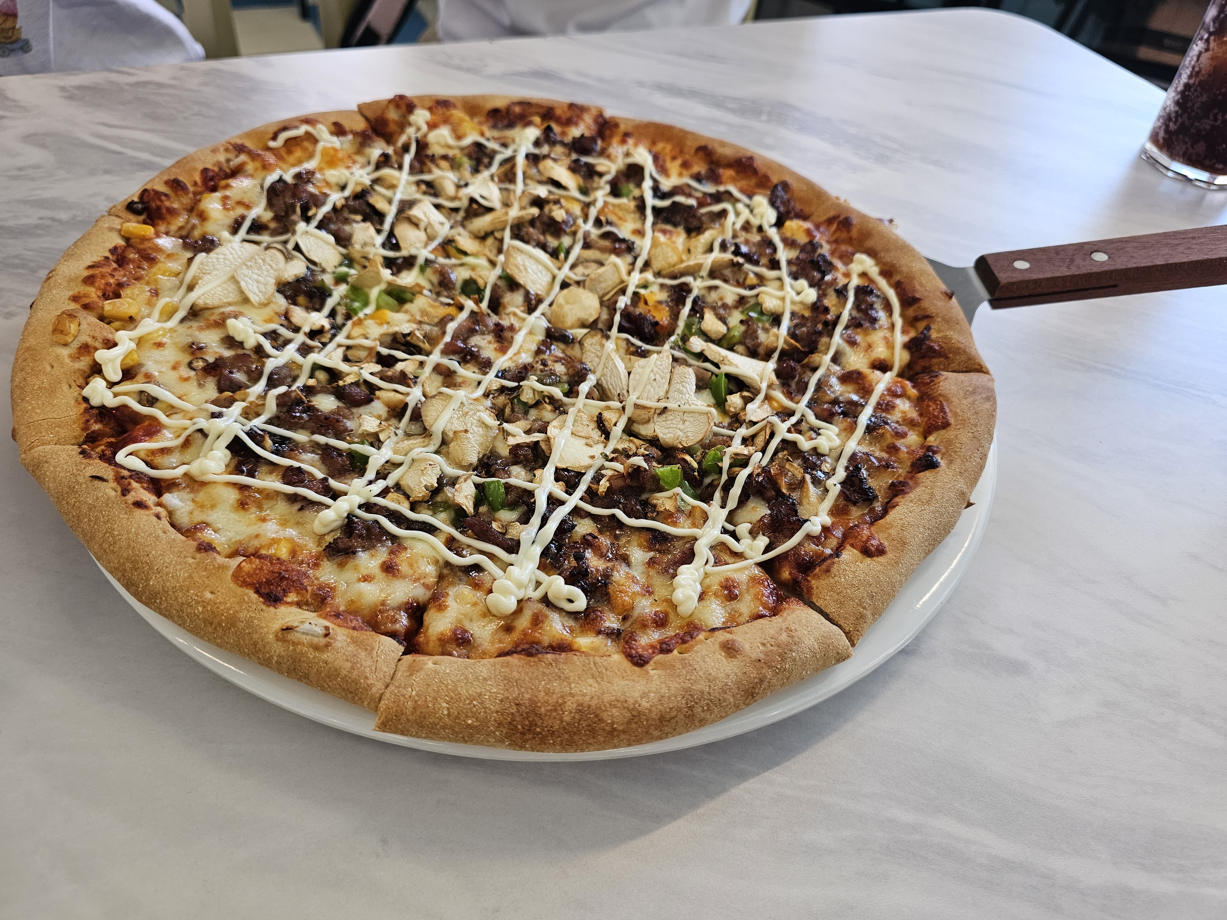 리얼직화불고기피자와 베이컨고구마피자입니다. 두 피자 모두 제 입맛과 친구들 입맛을 사로잡았습니다.