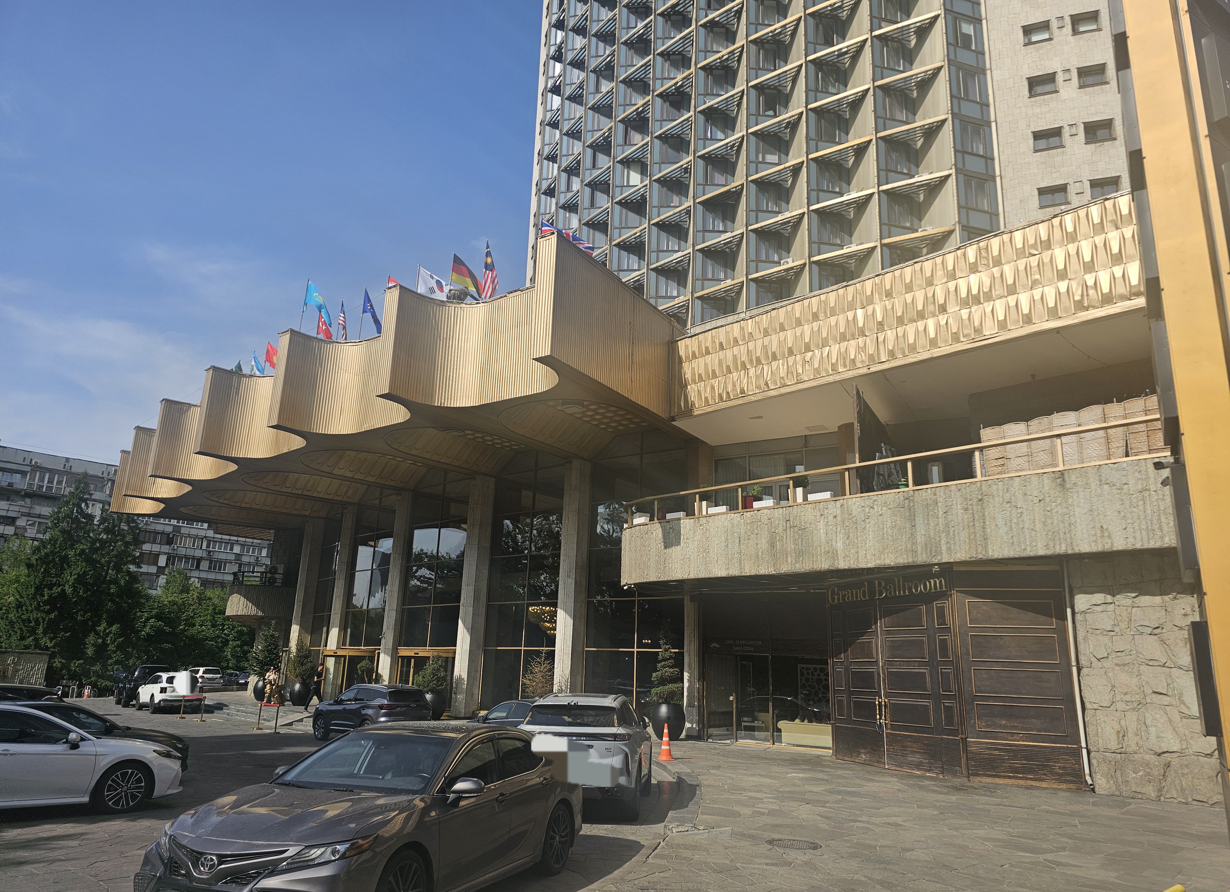 소비에트 건축 모더니즘 방식으로 지어진 이 호텔은 2008년까지도 알마티에서 가장 높은 건물이면서 알마티에서 가장 내진성이 띄어난 고층 건물로 유명해졌죠. 그래도 오래된 건물이었기에 2010년에 재건축이 진행되어 투명한 출입구와 로비의 대형 샹들리에가 설치되기도 했죠.