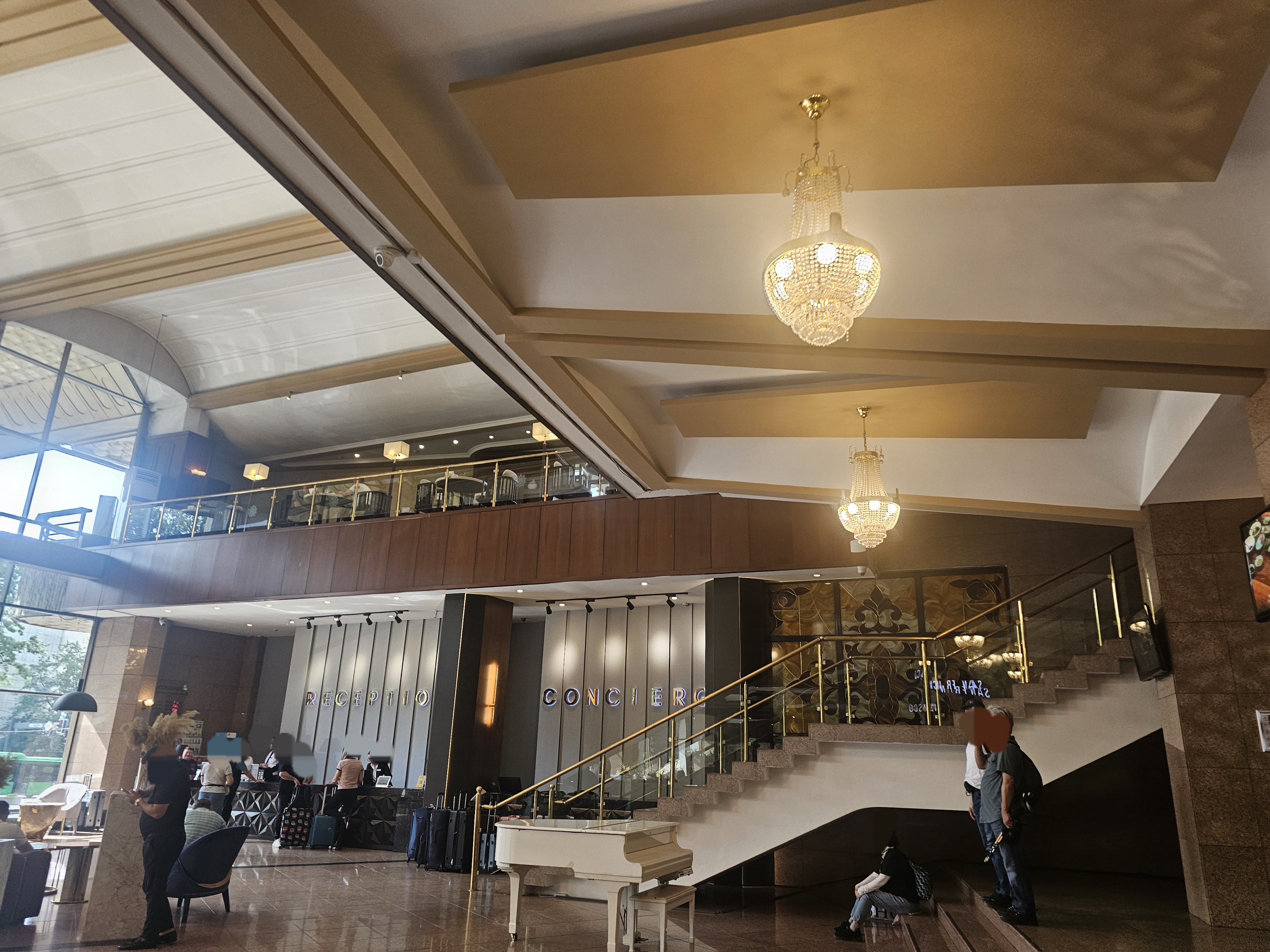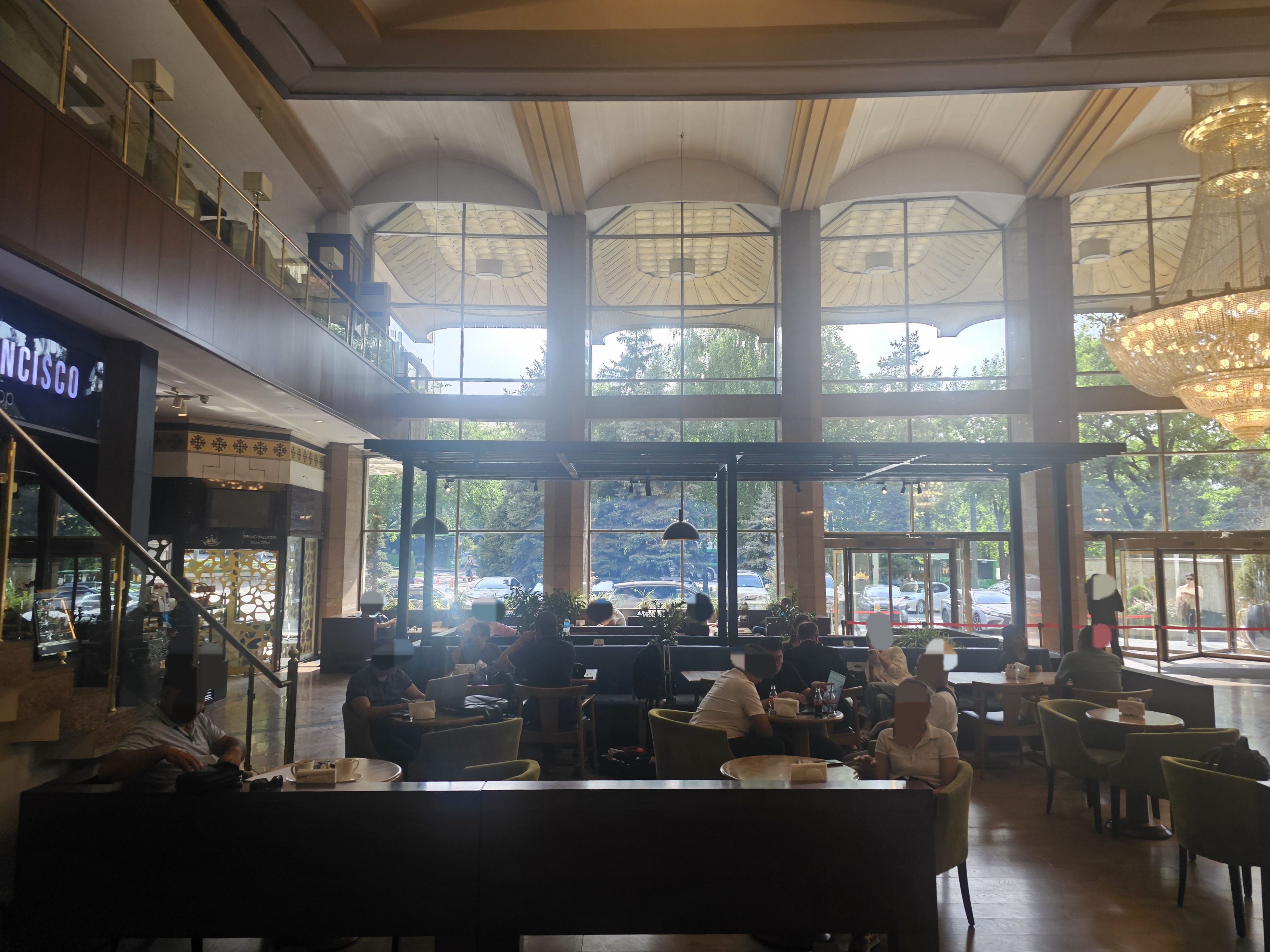호텔 로비 내부는 이렇습니다. 가드가 지키고 있구요. 바로 왼편에 리셉션 공간이 있습니다. 그리고 호텔 안에는 식당과 카페도 자리해서 만남의 장소로도 쓰입니다. 알마티를 방문하신다면, 역사적 가치와 아름다운 주변 환경을 모두 갖춘 호텔 카자흐스탄에서 잠시 시간을 보내시길 바랍니다. 로비의 활기찬 분위기 속에서 커피 한 잔을 즐기거나, 호텔 앞에서 기념사진을 남겨 보는 것도 재밌겠네요~