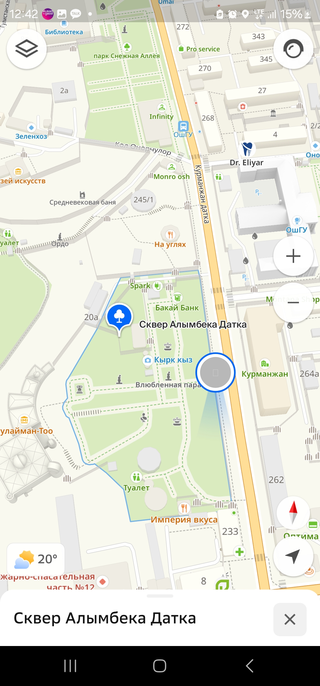 키르기스스탄 오시 술라이만투 동쪽 외부에 알림벡닷카소공원(Сквер Алымбека Датка)이 있습니다.