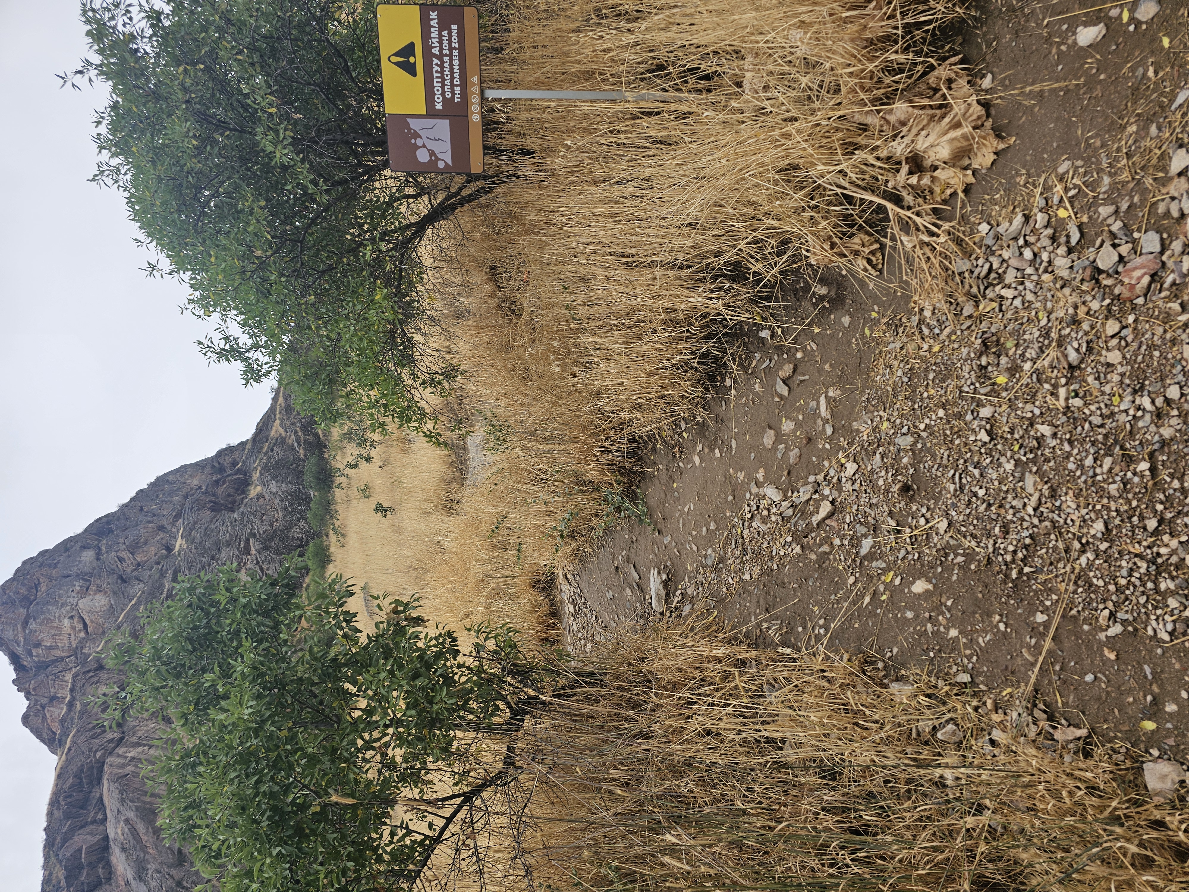 이 위험구간 안내판이 있는 쪽으로 약 8분 정도 올라갔습니다. 흙바닥이 미끄럽고 경사가 갑자기 심해져서 미끄러질 뻔 했습니다. 제대로 된 등산 준비를 하고 가야 할 것 같더군요. 그냥 술라이만투 자체를 둘러보고 싶으신 분들은 이곳을 포함한 여러 높은 동굴로 등산하는 것을 자제부탁드립니다. 여간 위험한게 아니었어요.. 가는 길에 안전하게 잡을 줄 같은 것도 없었는데, 또 그걸 설치할 공간도 없더라고요...