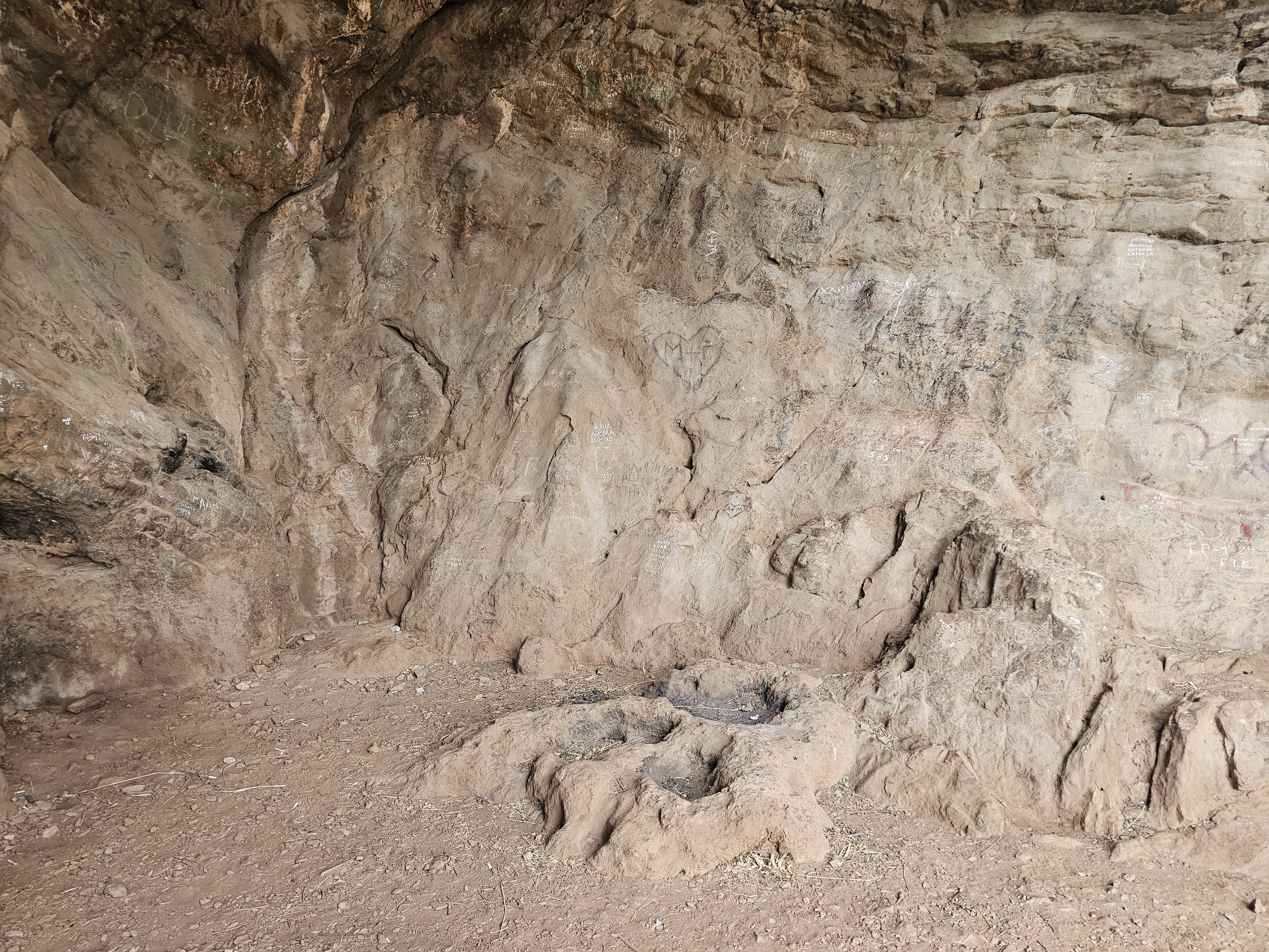 이렇게 험한 곳을 올라왔는데요. 동굴 속 풍경은 이랬습니다. 그리고 동굴 벽에는 여러 현지인들의 이름들이 키릴 문자로 쓰여 있더군요. 명색이 유네스코 문화유산인데 관리가 제대로 안 된 모습이라 아쉽습니다. 어쨌든 현지인들은 이곳이 오래전부터 기도터로 쓰인 곳이라고 여겼다고 합니다.