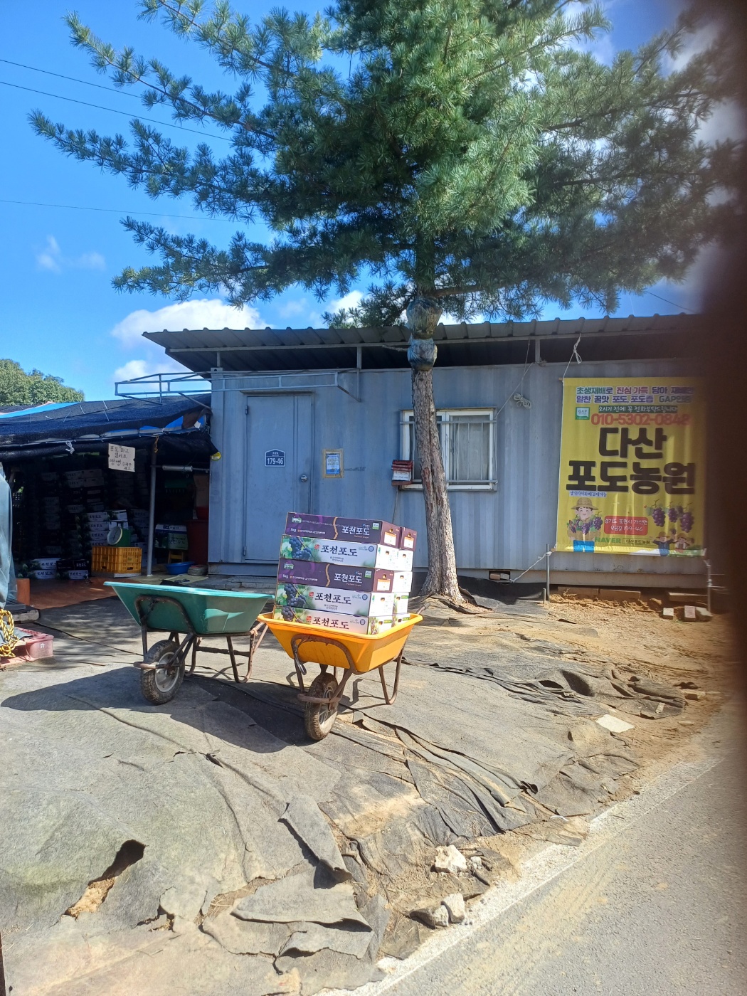그렇게 가다보면 다산포도농원 현수막 안내판이 보이고 포천가산포도 포천가산포도농원 포천다산포도농원 건물이 보입니다.
