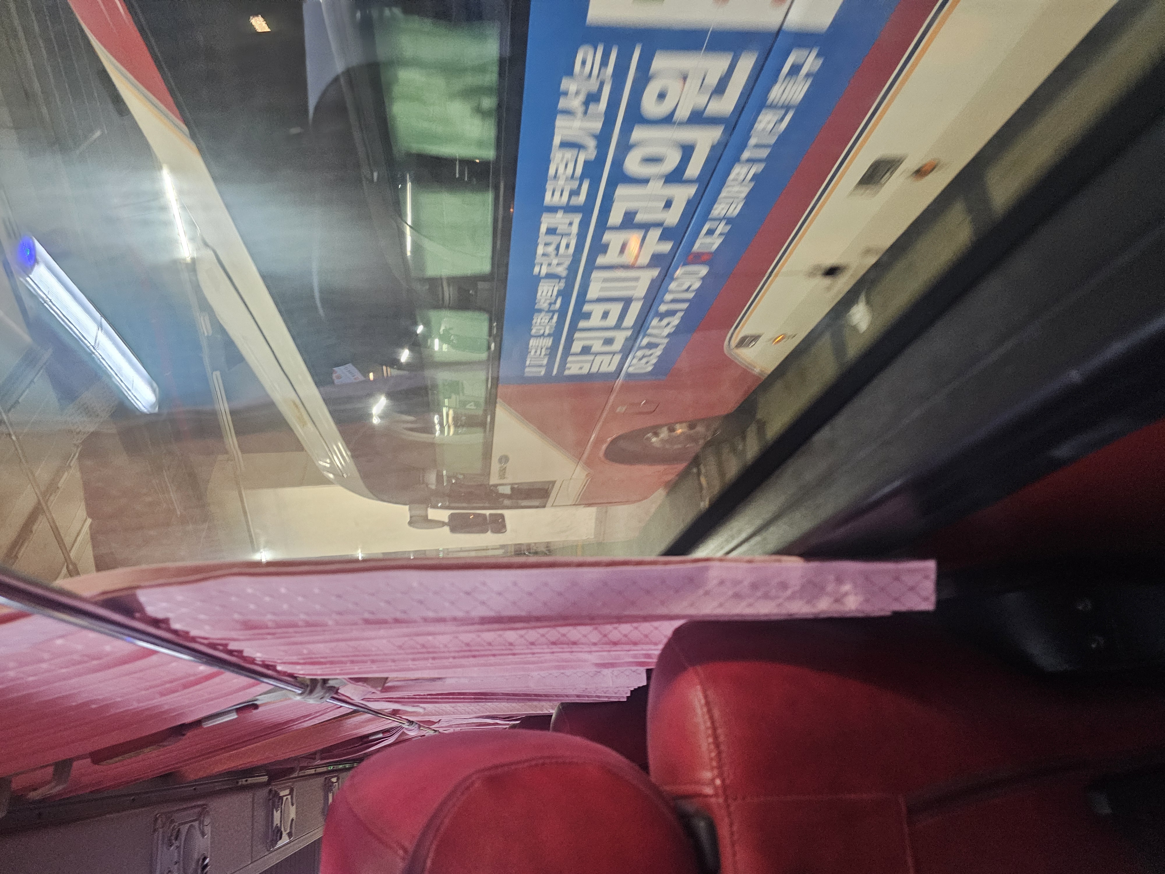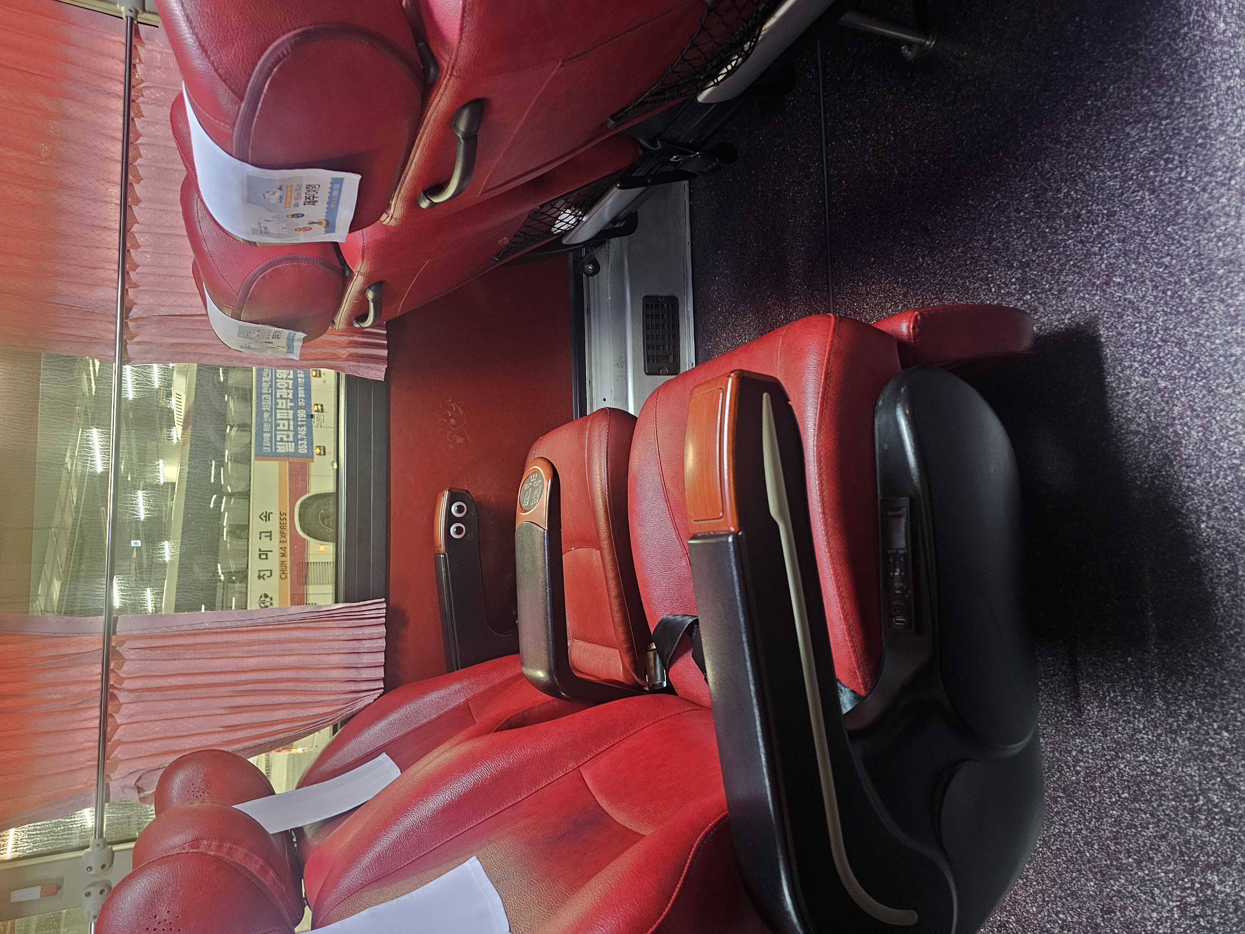 이 고속우등버스는 생각보다 앞쪽과의 거리가 있어서 편했습니다. 좌석 오른쪽에는 의자의 기울기와 다리받침대의 기울기를 조절할 수 있는 곳이 있어서 좋았어요.