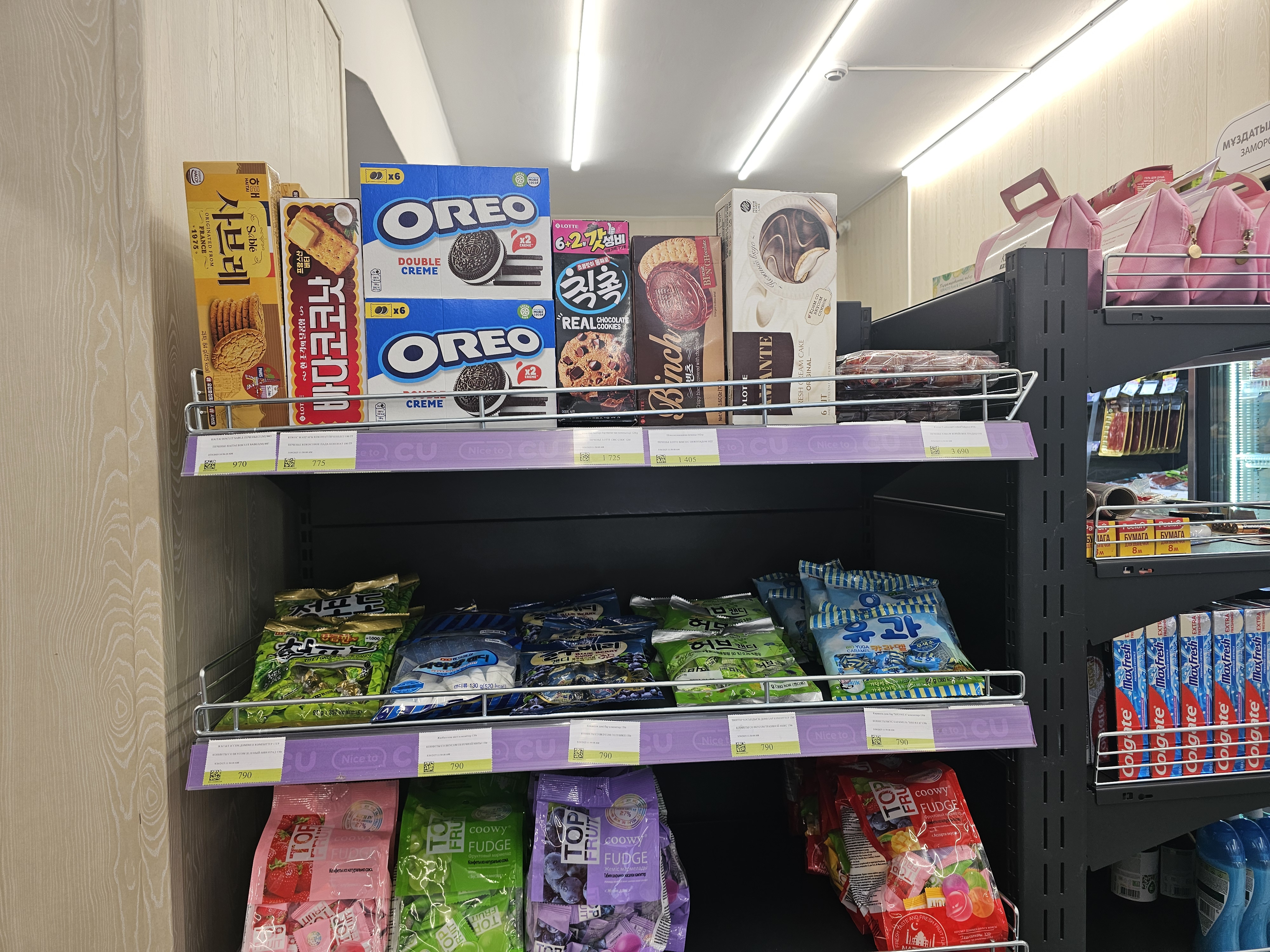 산책 중 발견한 나자르바예프대로 120(Проспект Назарбаева, 120) 에 위치한 CU에 들어서자, 점원이 "어서오세요, CU입니다"라며 반갑게 인사하더군요. 외국에서 현지인이 한국어로 인사하는 순간은 정말 특별했어요. 그 순간 일본인이 한국의 일식집에서 '이랏샤이마세!'라는 인사를 들을 때의 기분이 이런 게 아닐까 싶었습니다.