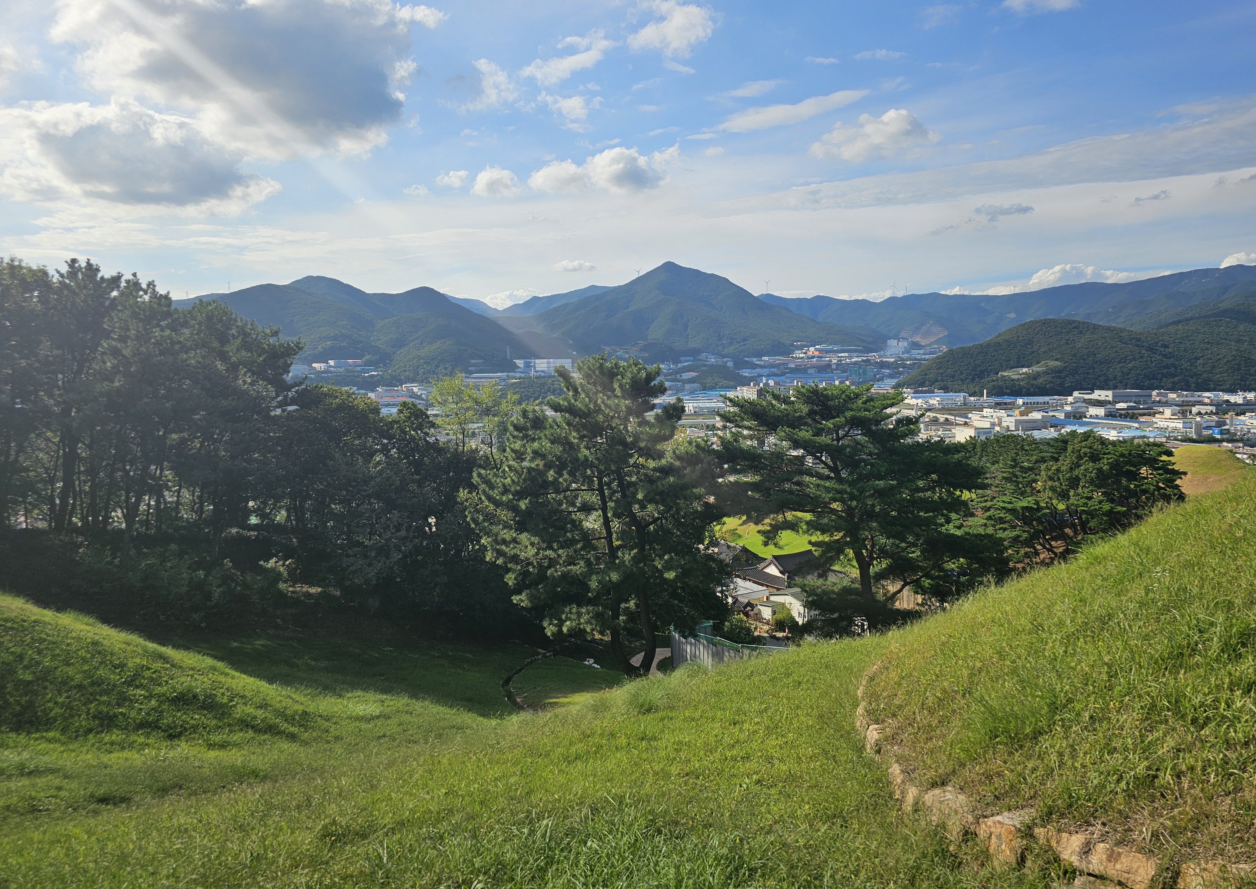 북정리 고분군에서 본 신기리 고분군입니다. 저 거대한 무덤과 다른 무덤들, 그리고 연구중인 구역 전체가 보입니다.