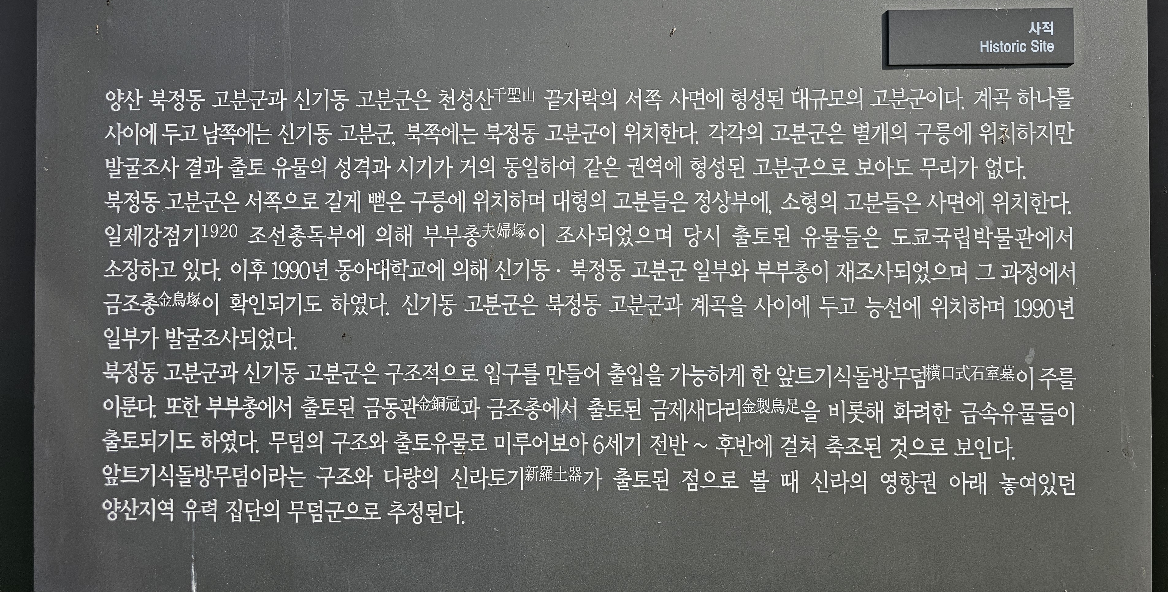 양산시 신기동과 북정동에 위치한 양산 신기리 고분군과 양산 북정리 고분군입니다.