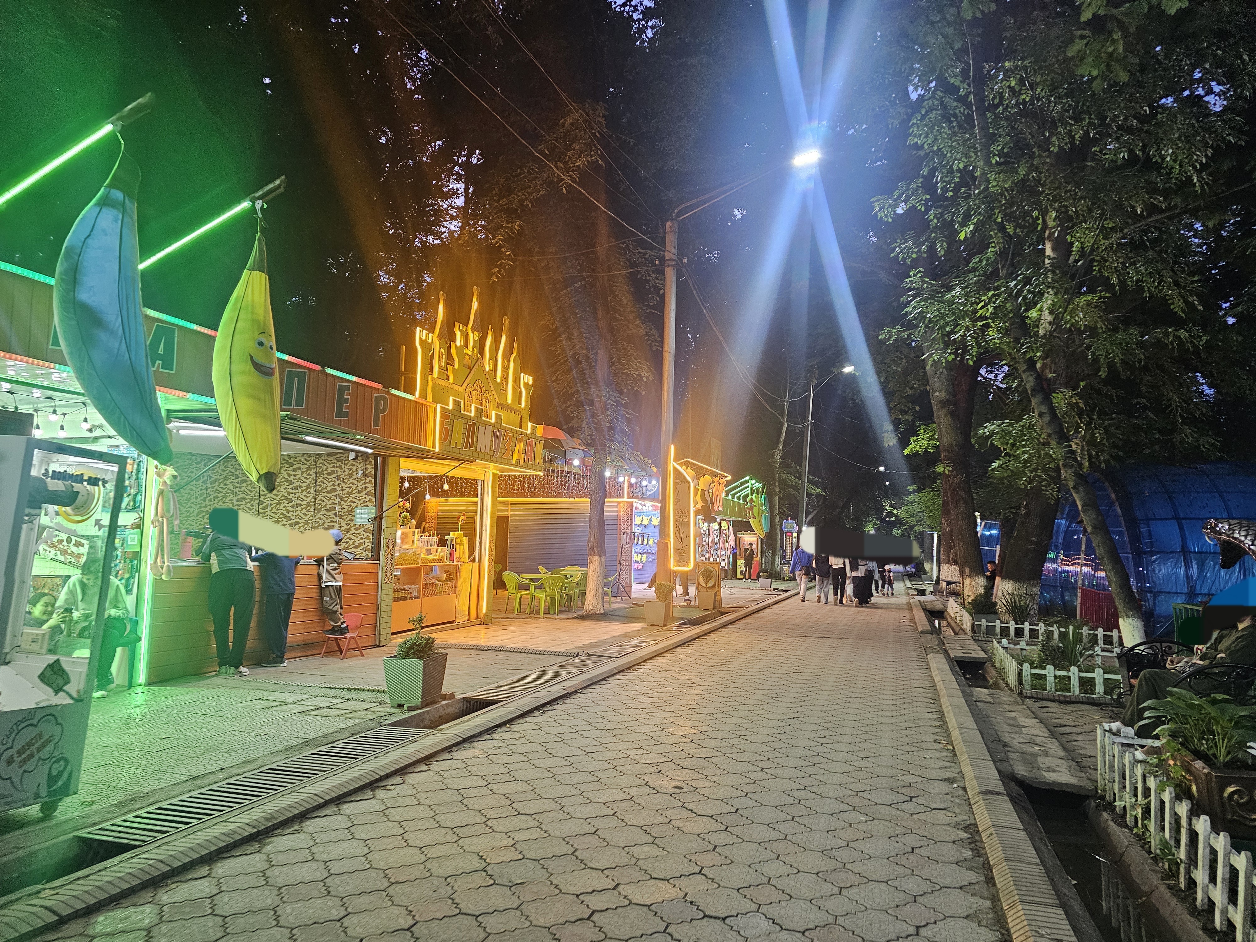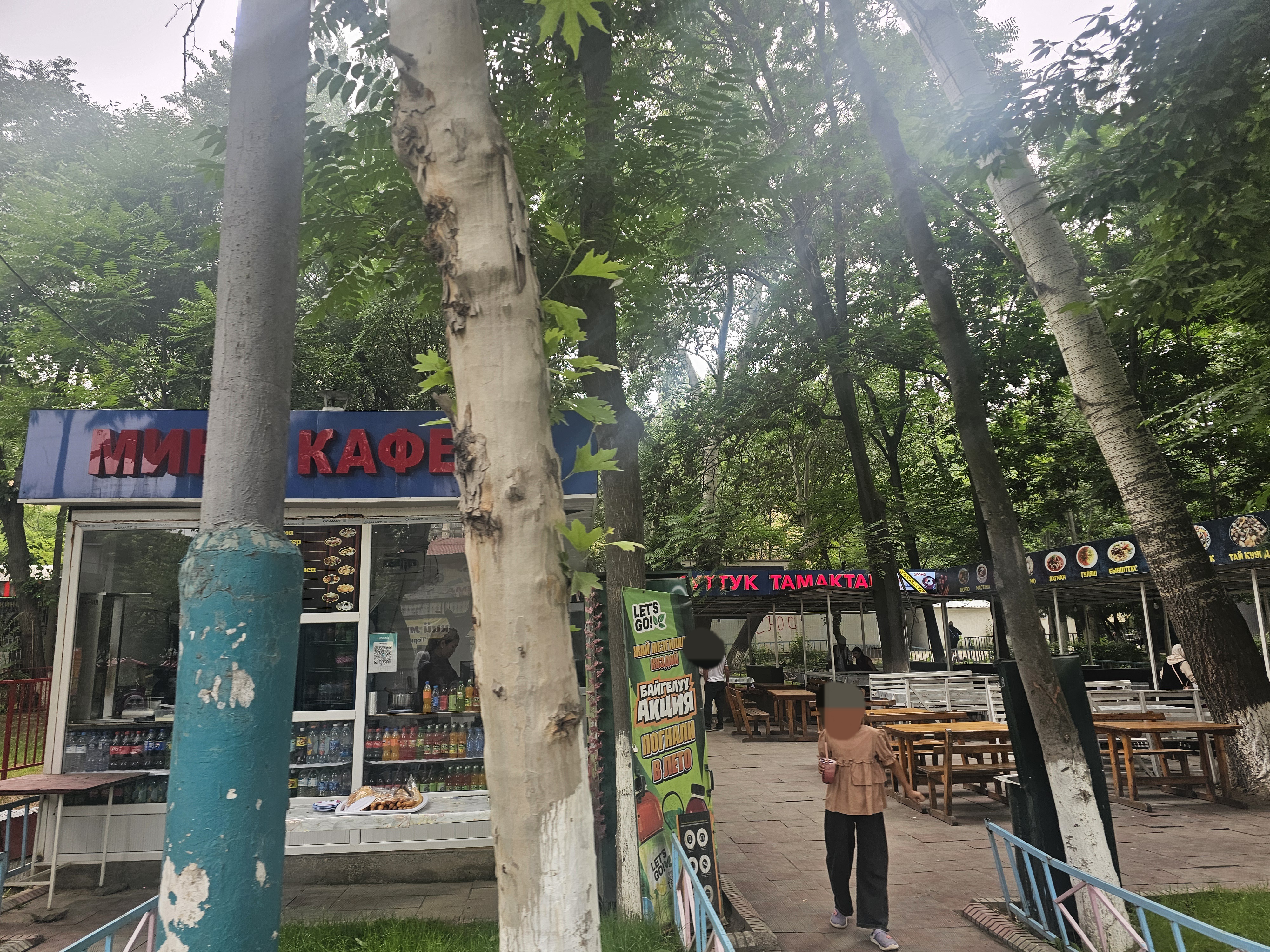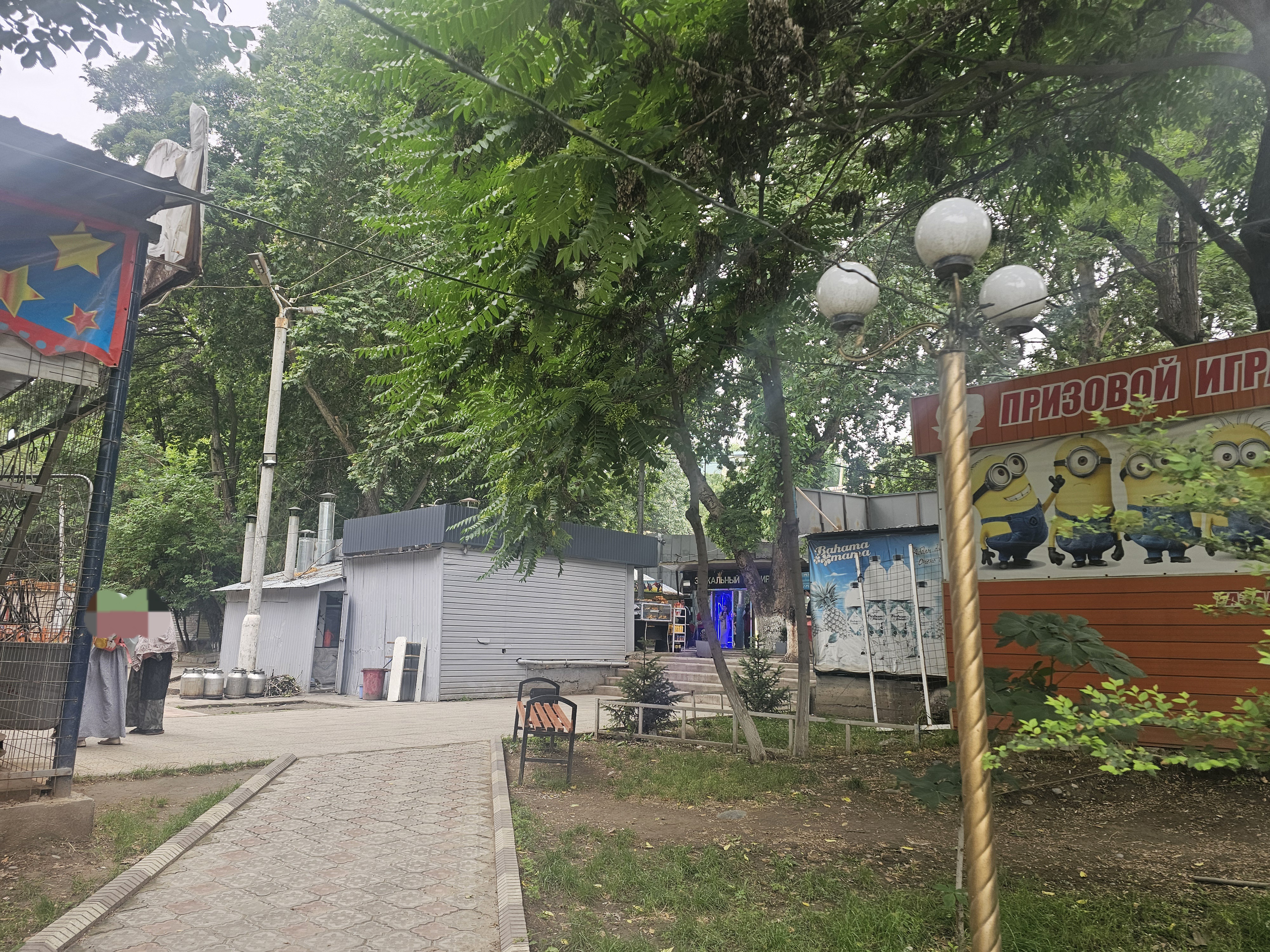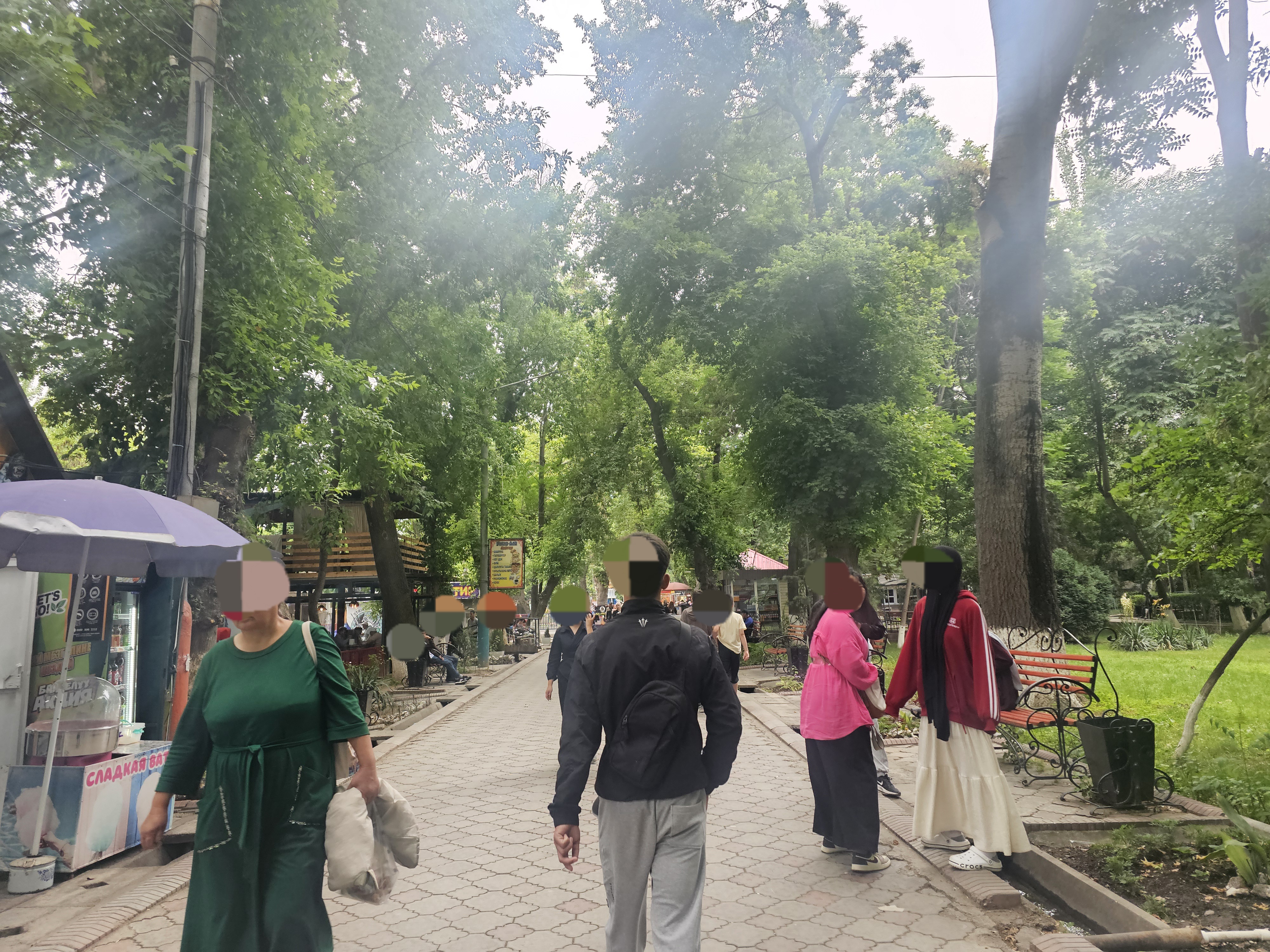 이곳은 오시국립대학교(ОшГУ)의 정문에서 알림벡닷카길(Улица Алымбека Датка)로 건너오면 보이는 공원의 서쪽 입구입니다. 여기에서 사람들이 만나고, 연인들은 식사 데이트를 하고 산책을 시작한다고 친구가 알려줬어요.