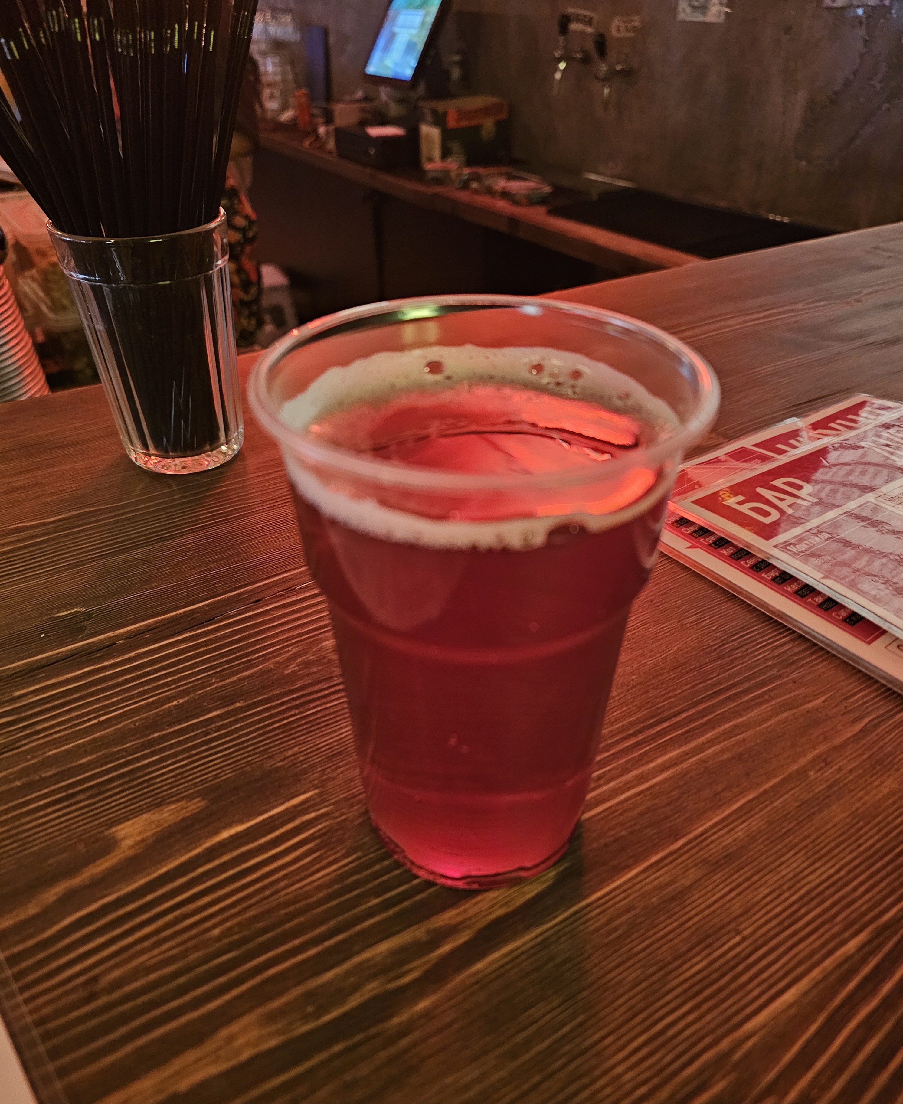 Dvor의 내부는 모던한 붉은 조명 현대식 인테리어가 조화를 이루는 공간으로, 러시아식 감성과 유럽식 바의 세련됨이 동시에 느껴집니다. 음악 소리는 적당히 크며, 혼자 혹은 친구들과 방문하기 모두 좋은 구조입니다.