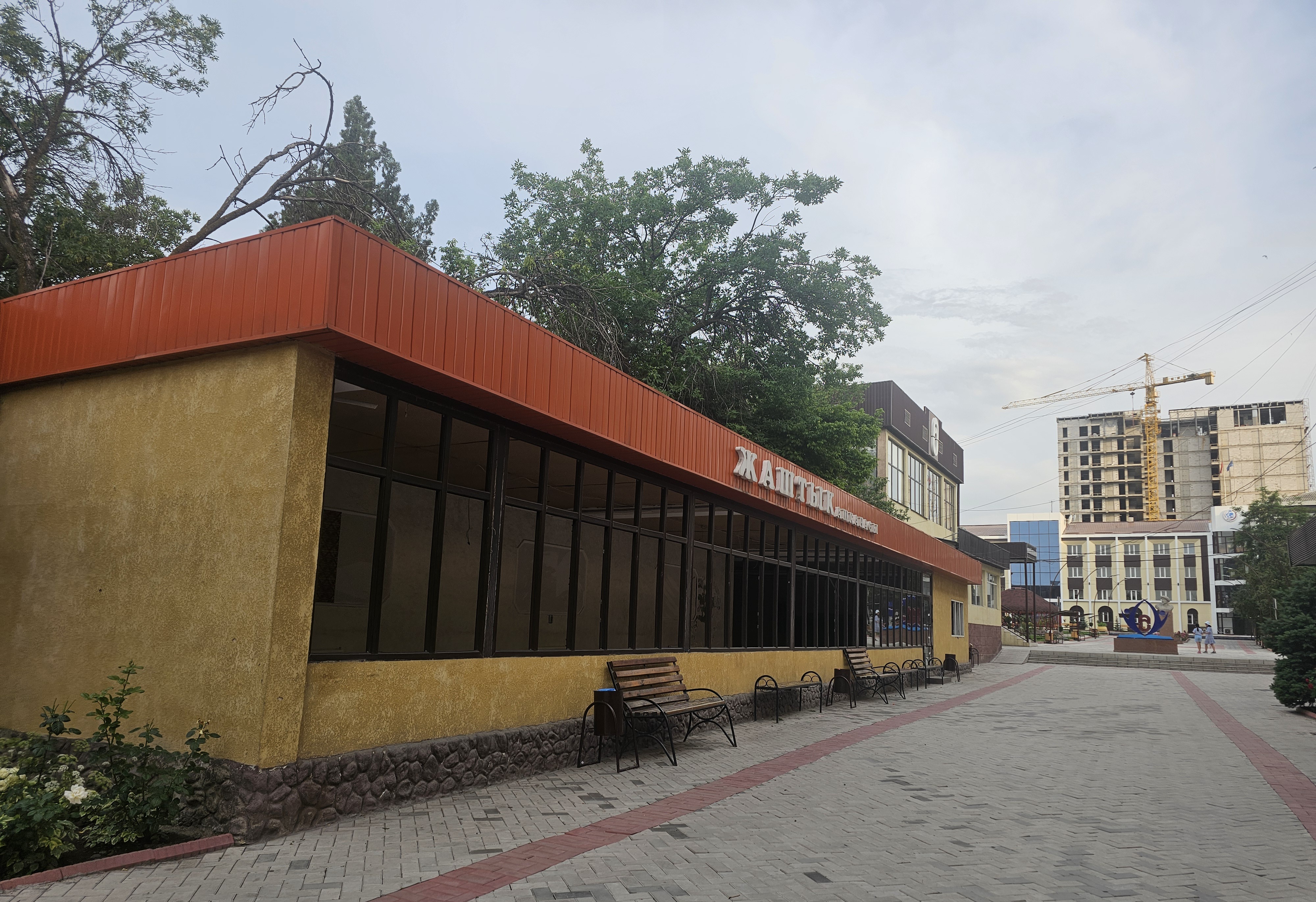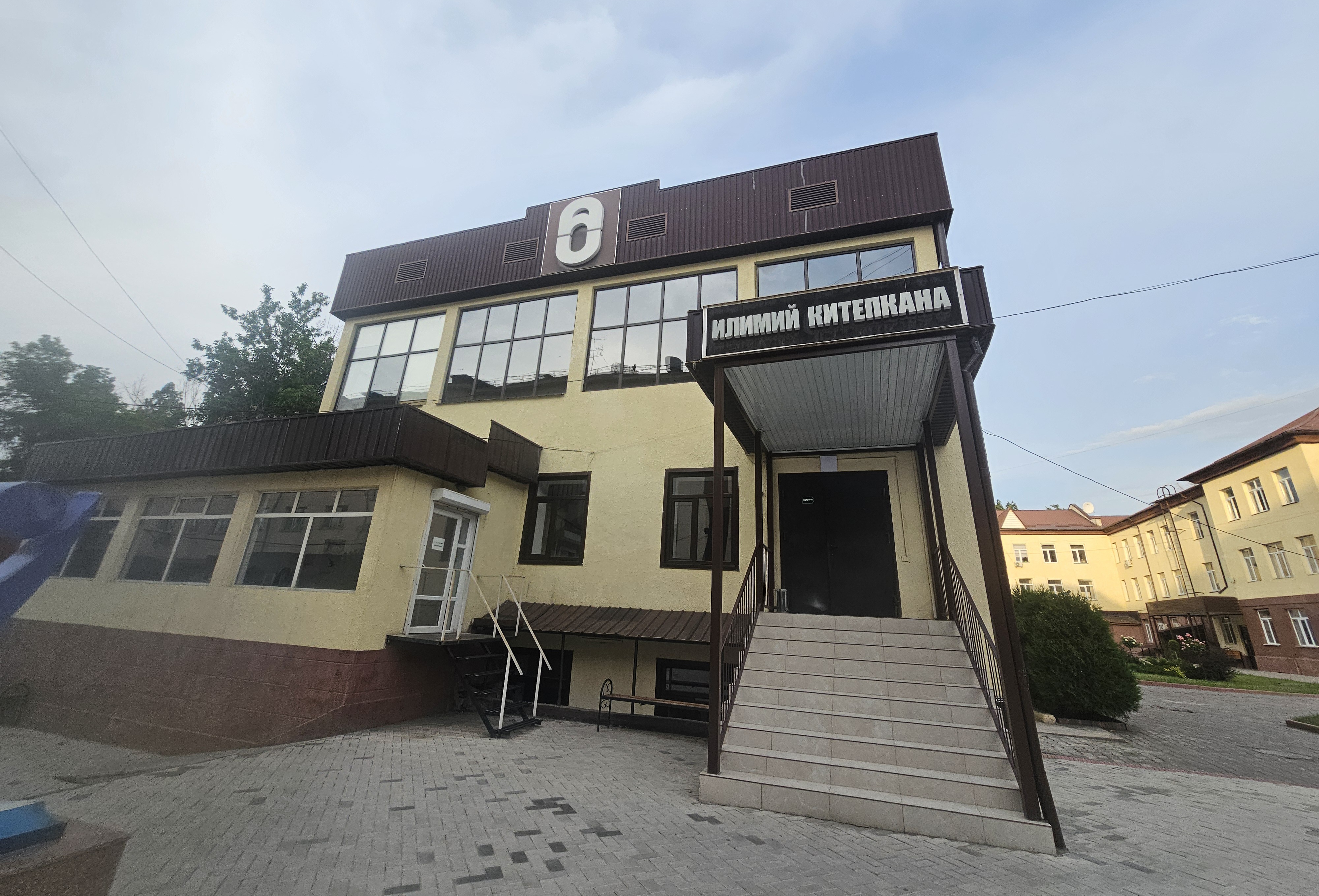 정문을 들어서면 왼쪽에 식당 자시틱(Жаштык ашканасы)이 있고, 오른쪽에 5번 건물이 있습니다.