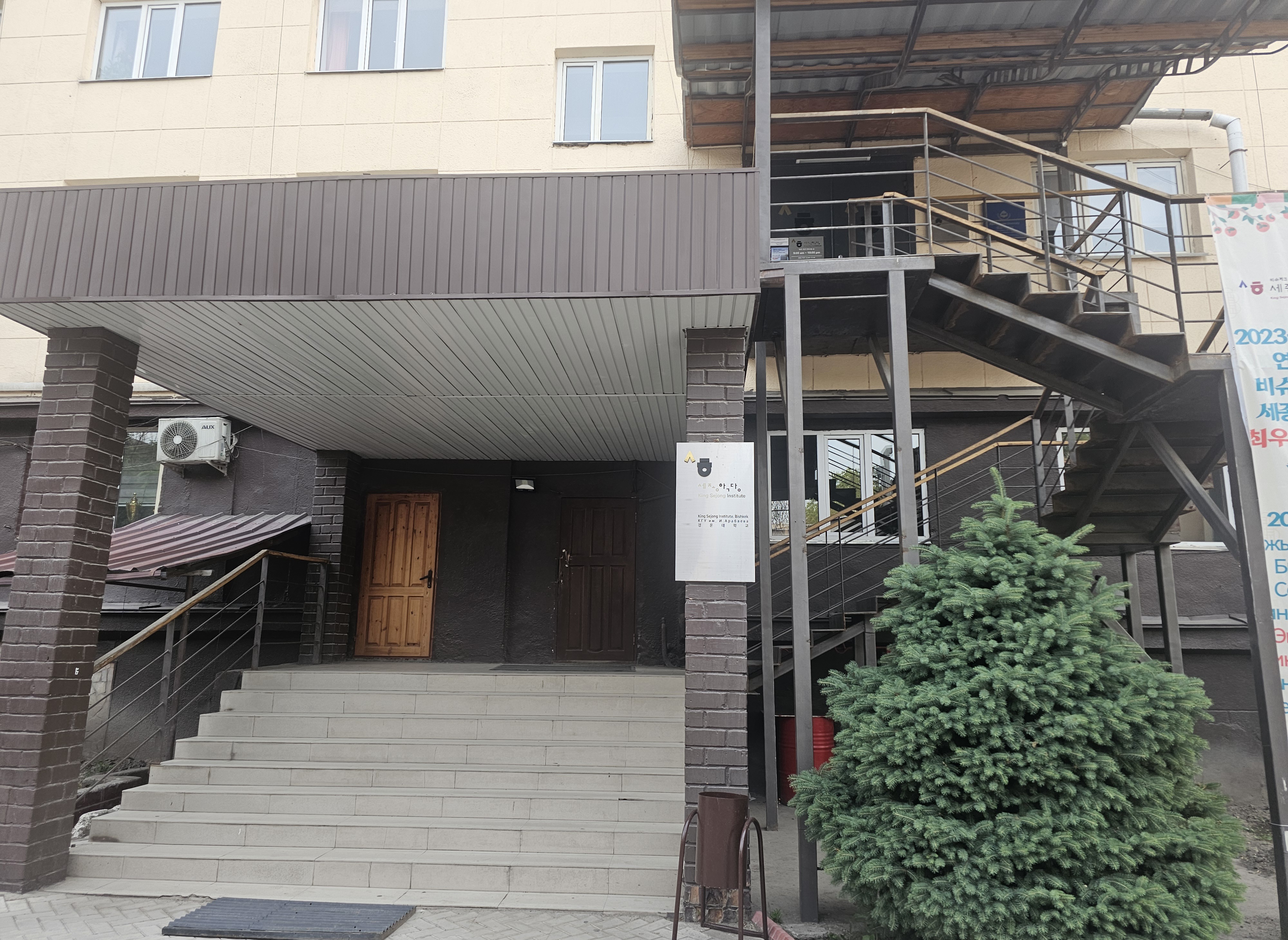 이 5번 건물에는 2013년에 개원해서 벌써 12년 이상 동안 많은 한국 문화를 소개하고 가르치는 세종학당이 있습니다. 시간이 지난 2024년부터는 '2024년 신규 세종학당 공모사업'에 선정된 경운대학교가 우즈베키스탄, 아제르바이잔, 베트남과 함께 키르기스스탄의 이 이셰날리아라바예프키르기스스탄국립대학교 세종학당이 운영하고 있습니다.