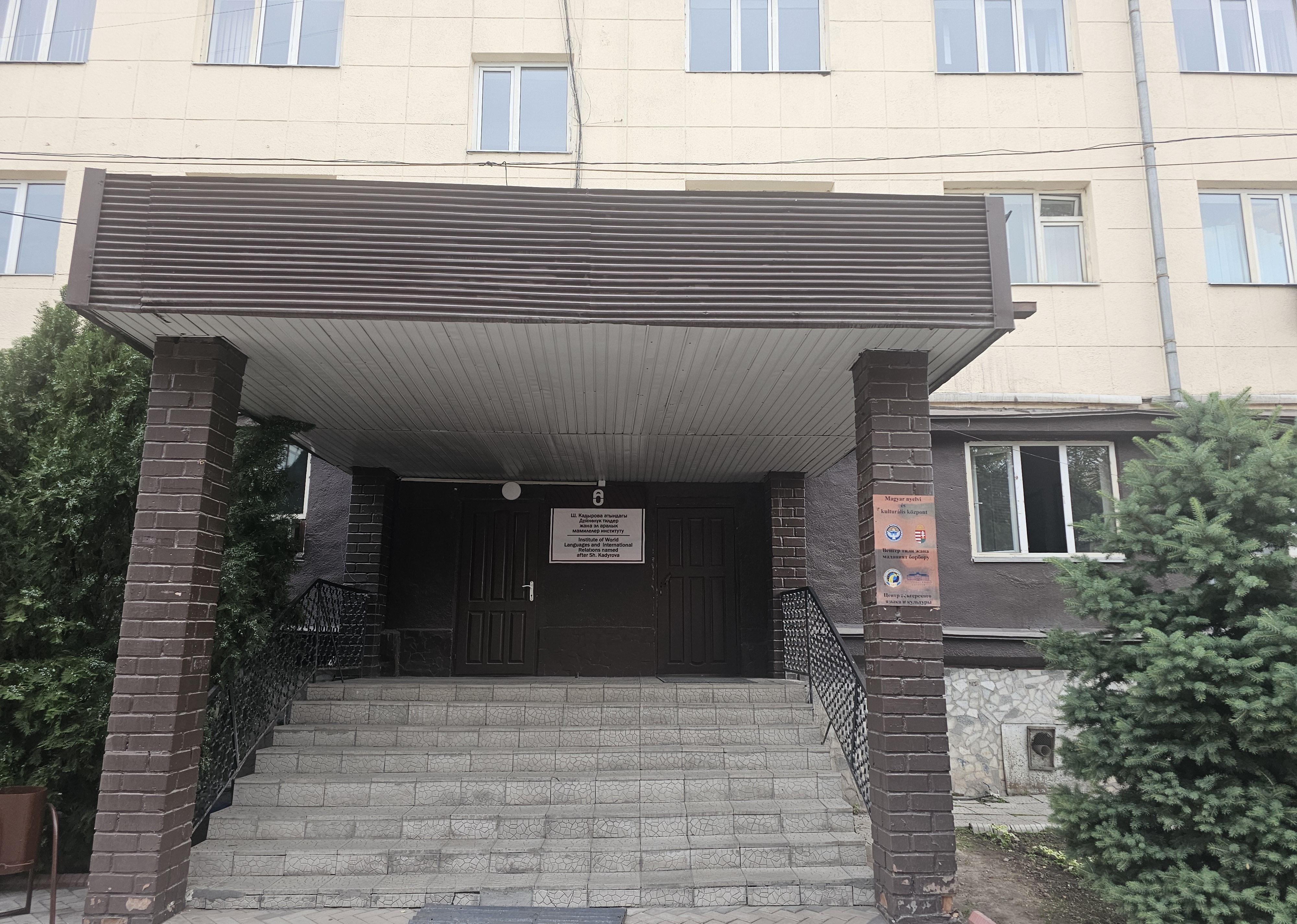 5번 건물은 세종학당 외에도 여러 핵심 기능을 담당하는데요. 이 건물의 가운데 입구는 Ш. 카디로바 세계언어국제관계대학으로 이어져 국제 교류의 창구가 됩니다.