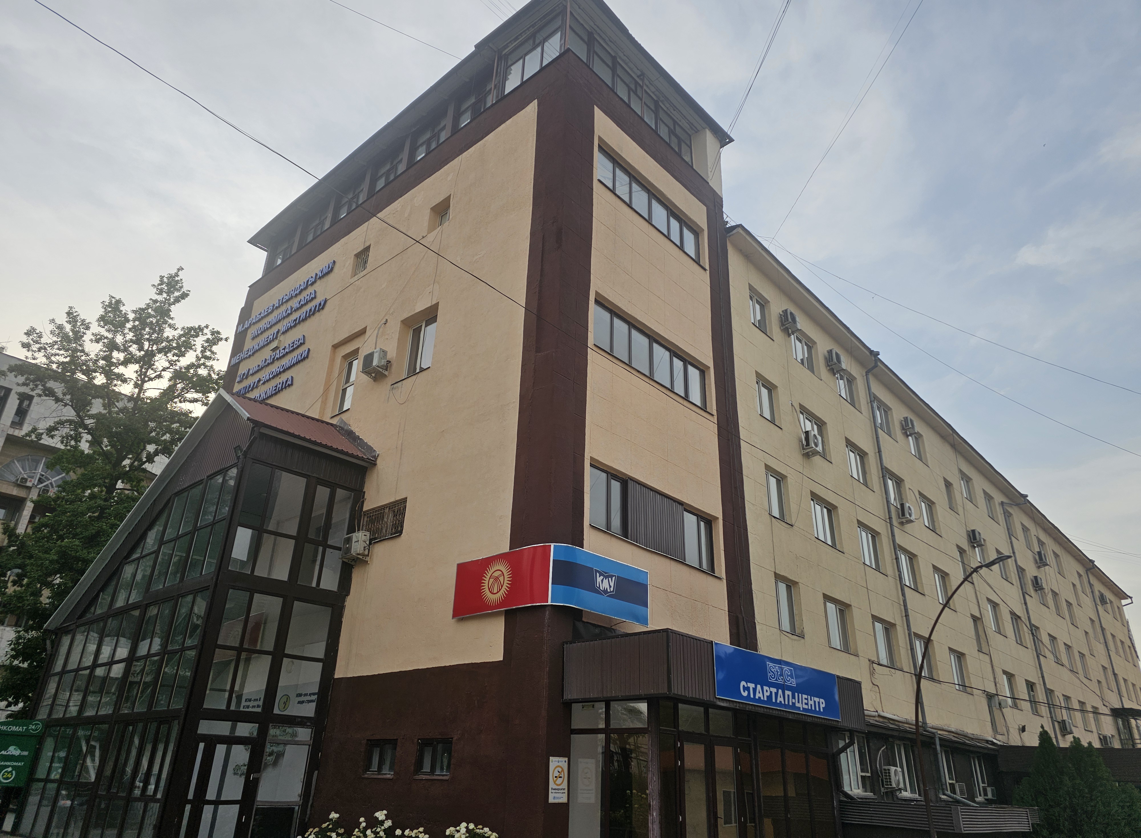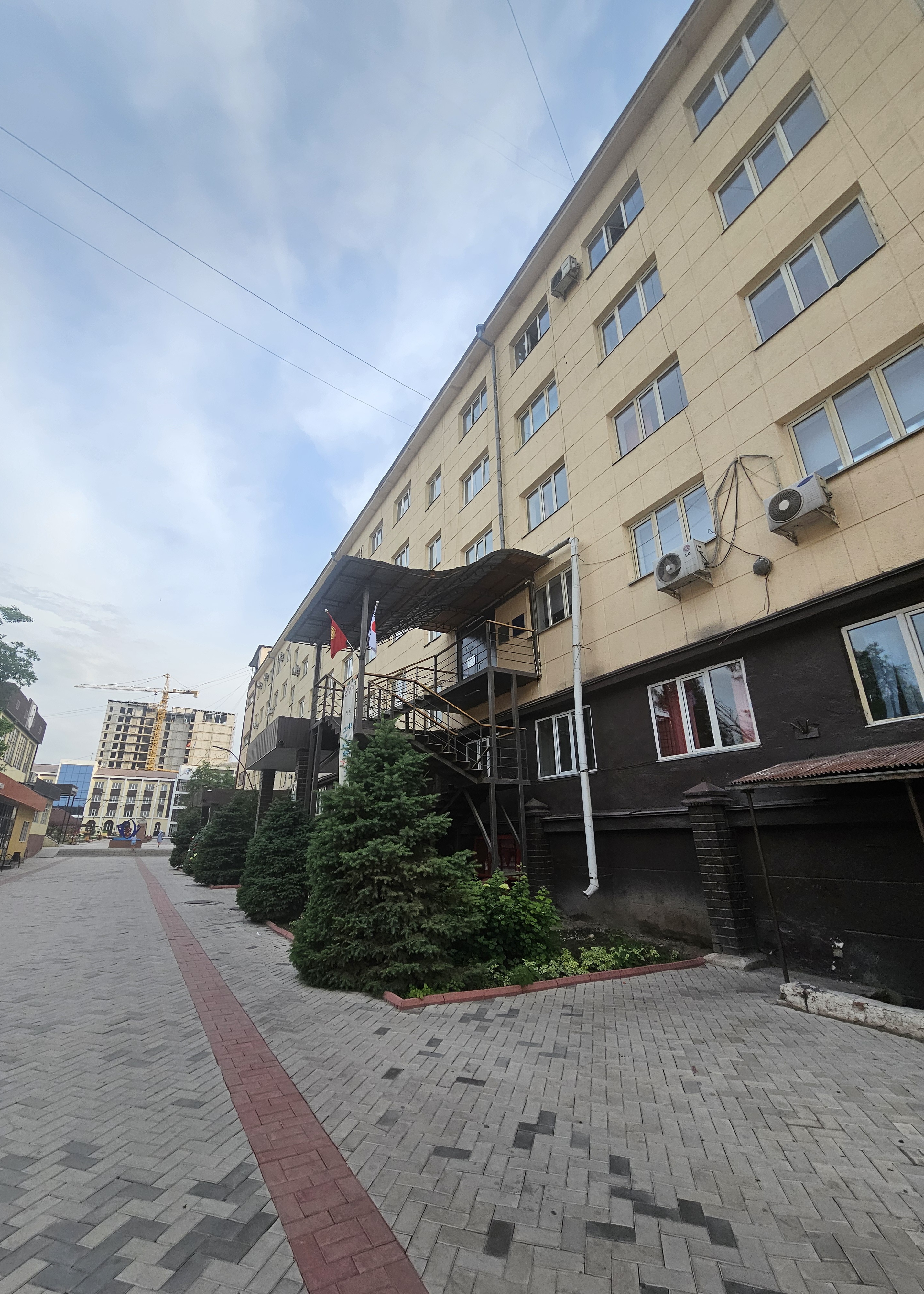 1번 건물 뒤편, 동쪽 출입구 쪽으로 향하니 흥미로운 장면이 눈에 띄었습니다. 키르기스스탄, 미국, 그리고 자랑스러운 대한민국의 태극기를 포함한 여러 나라의 국기가 나란히 게양되어 있었습니다! 이는 이셰날리 아라바예프 키르기스국립대학교가 얼마나 활발하게 국제 교류를 펼치고 있으며, 한국과의 관계가 돈독한지도 시각적으로 보여주는 듯했습니다.