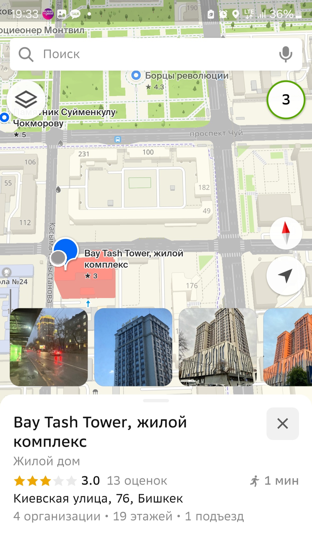 키르기스스탄 비슈케크 페르보마이구의 키예프길 76(Киевская улица, 76)에 위치한 바이타시타워(Bay Tash Tower)는 현재 건설중인 프리미엄급 주거단지입니다. 건물은 1-4층까지 쇼핑센터, 5층은 사무실, 6-19층은 주거용 아파트로 구성되어 있으며, 총면적 약 32000m²에 달합니다. 이 아파트 부지 내에는 어린이들과 가족들이 쉴 수 있는 내부 정원도 지을 계획이라고 하네요.