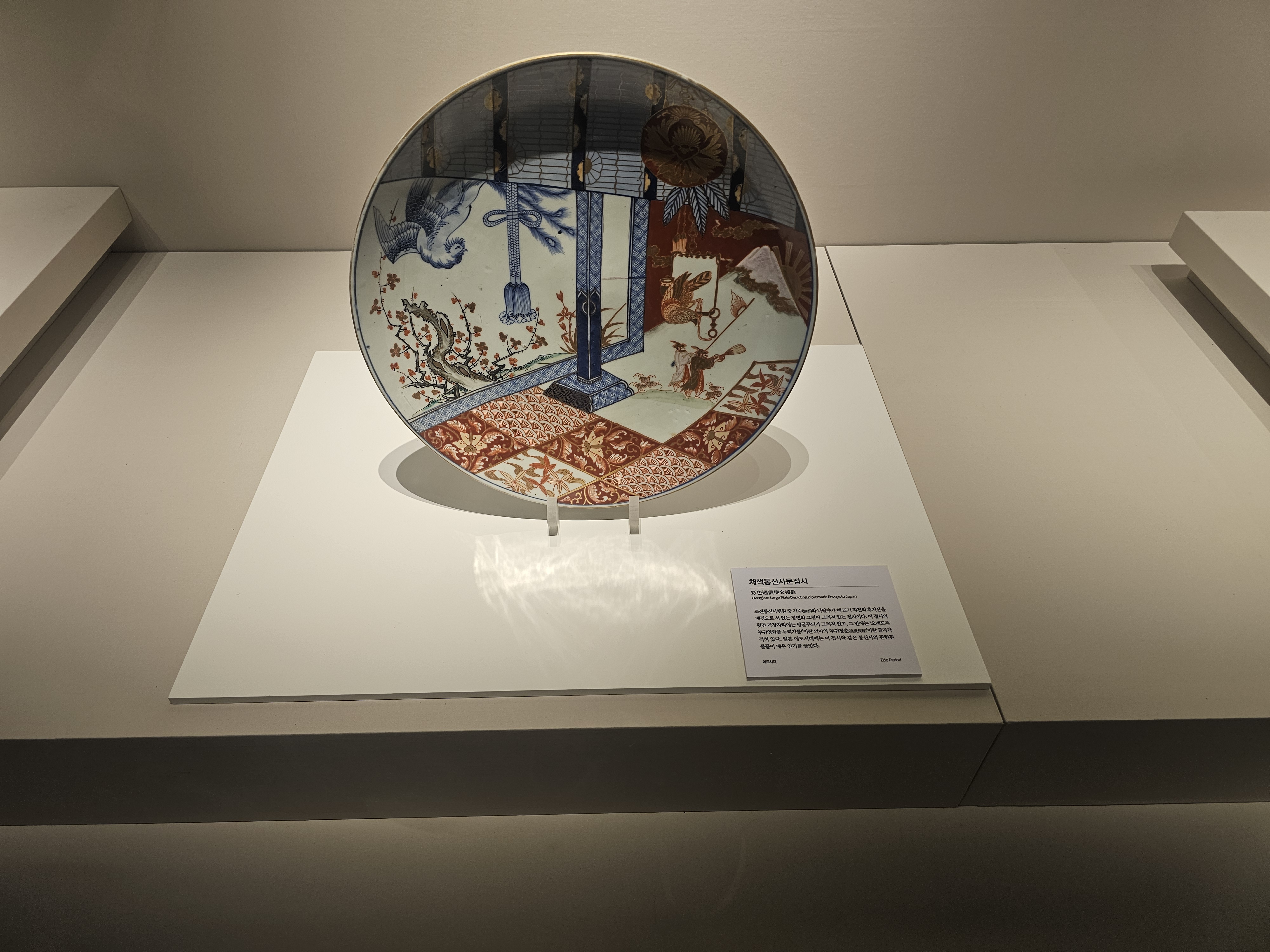 제10차 조선통신사에서 정사 직책을 맡았던 홍계희가 부산에서 에도까지의 여정을 총 30장면으로 나누어 그린 <사로승구도권(槎路勝區圖卷, 뗏목길명승지그림책, 1748)>을 볼 수 있었고, 일본 규슈 아리타(有田)에서 생산된 것으로 추정되는 조선인도해선문긴접시(朝鮮人渡海船文長皿, 조선인이 배로 바다를 건너는 무늬가 새겨진 긴 접시)와 조선통신사행원 중 기수와 나팔수가 해뜨기 직전 후지산을 배경으로 서 있는 장면이 그려진 채색통신사문접시(彩色通信使文楪匙)도 볼 수 있었습니다.