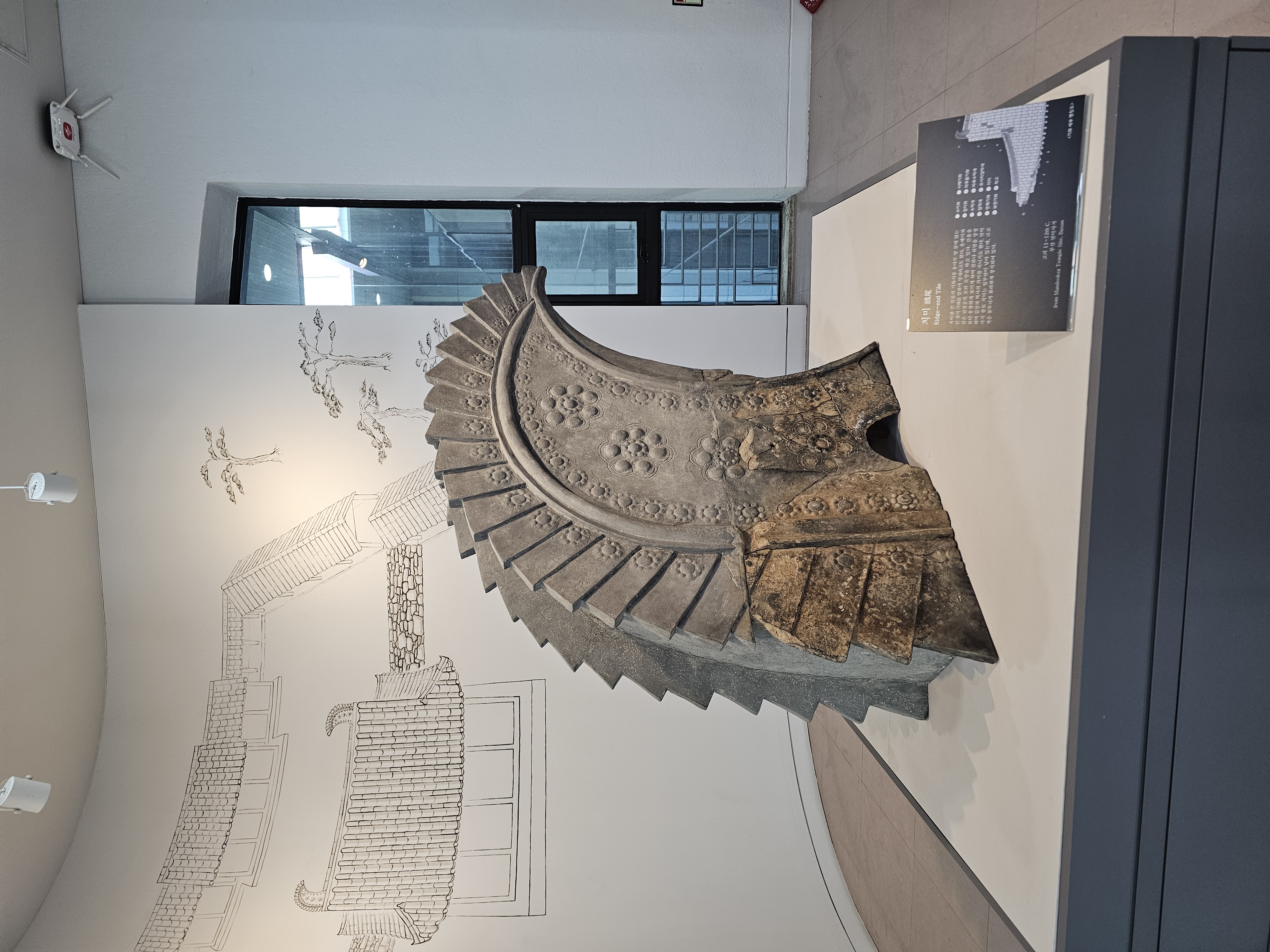 전시실을 나가 부산관으로 가는 길목 앞에는 부산 만덕사지에 있었던 기와지붕 용마루 양 끝에 얹은 치미(鴟尾, 망새)도 볼 수 있었습니다. 크고 작은 꽃무늬가 화려하게 장식되어 있다는 것이 특징입니다. 치미가 이 정도였으면 만덕사는 얼마나 거대한 절이었고, 국가에서도 얼마나 중요하게 여기고 있었는지를 짐작해 볼 수 있습니다.