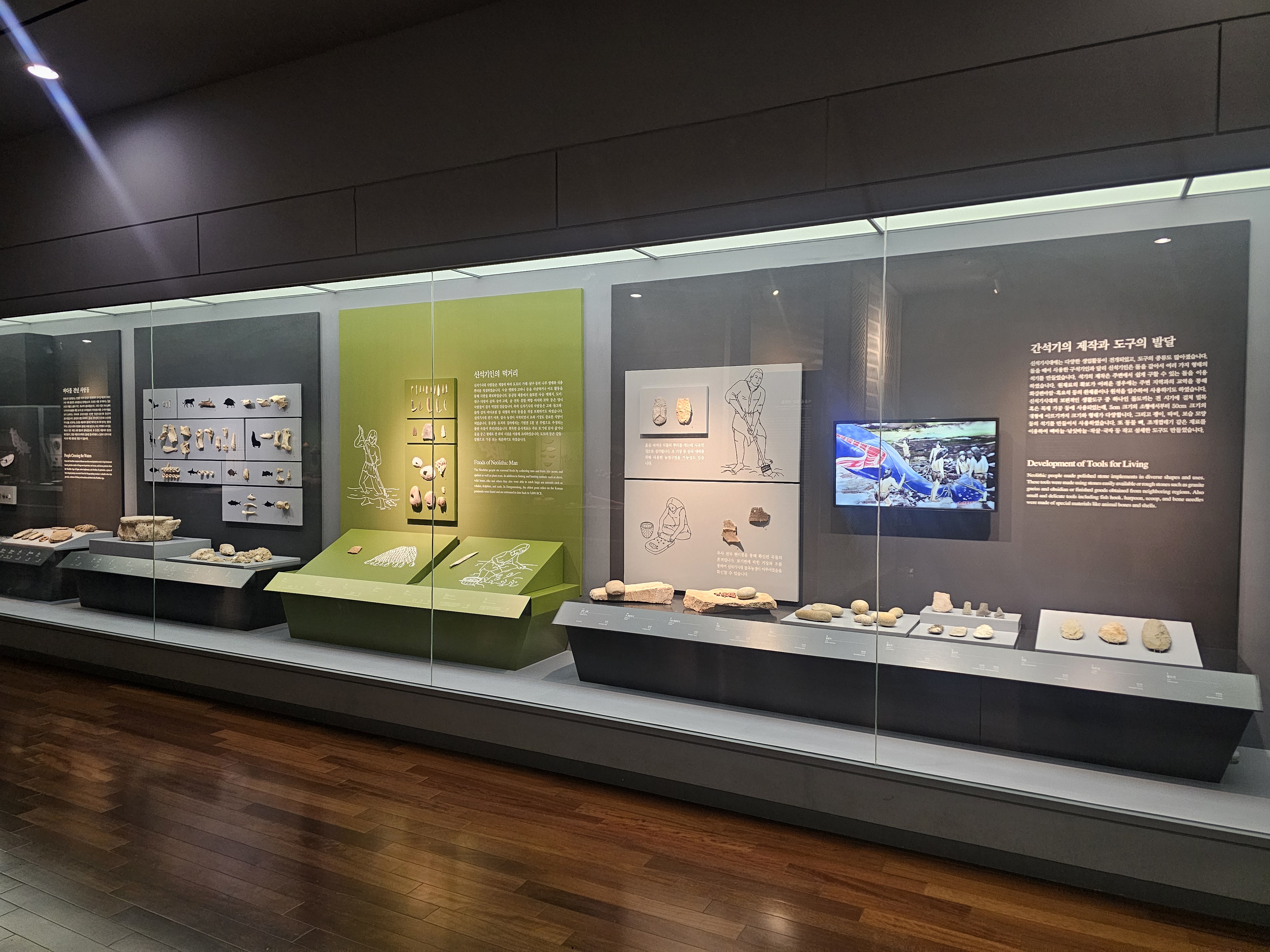 이 신석기시대에 주로 쓰였던 간석기들을 포함해서 당시 쓰였던 사냥 도구나 그 때 잡힌 동물들의 동물뼈 등이 전시되어 있습니다.
