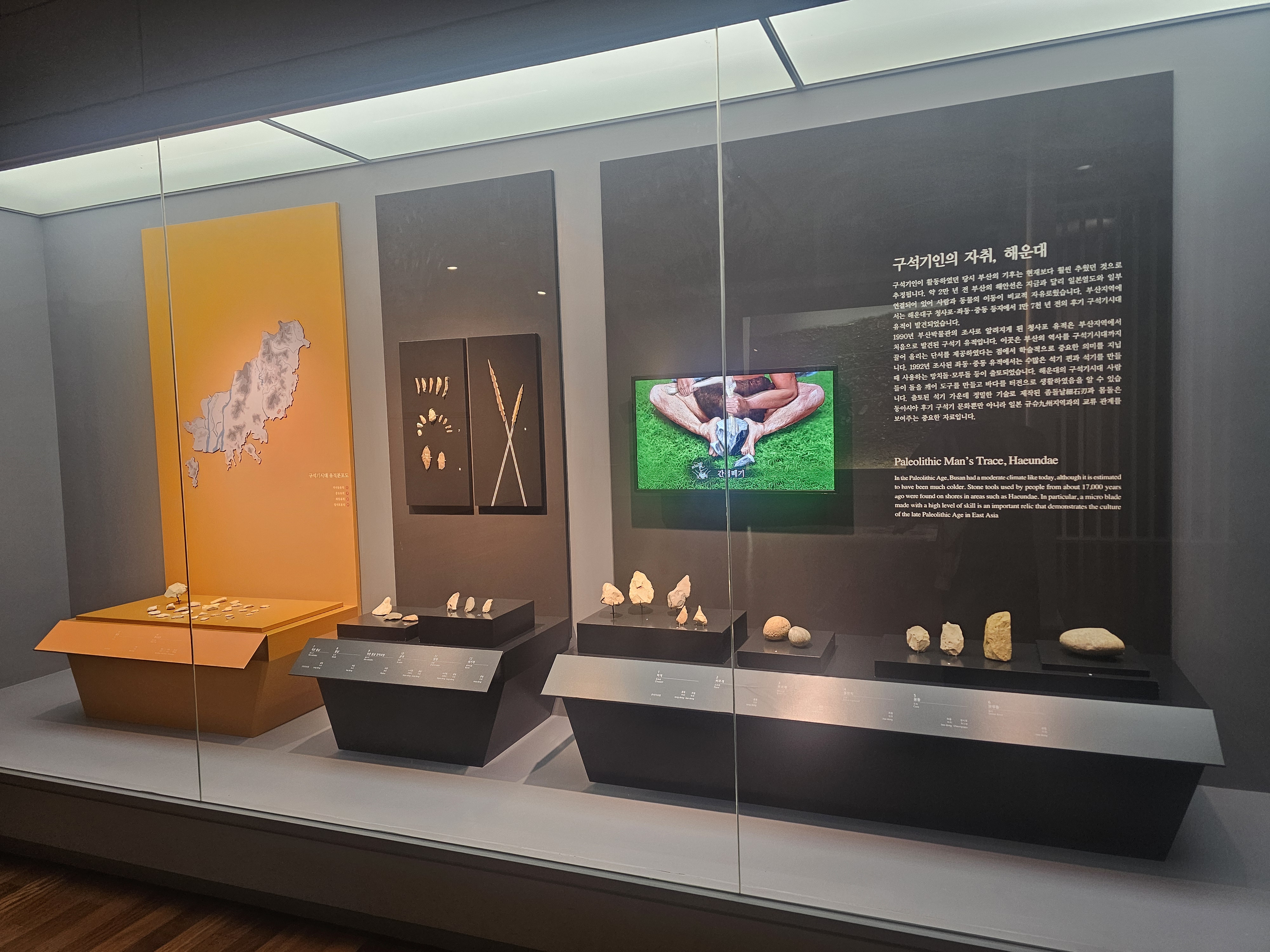 부산의 구석기유적 지금보다 훨씬 추웠고 일본 열도와 연결되어 있던 과거에 지금의 해운대구의 청사포(청사포유적), 좌동(좌동유적), 중동(중동유적) 지역에서 1만 7천 년 전의 후기 구석기 유적이 발견되었습니다. 이로 인해 당시 그 지역에 살던 사람들이 돌을 깨어 도구를 만들고 바다를 터전으로 생활했다는 사실을 확인할 수 있죠. 또 여기서 출토된 석기 중 좀돌날과 몸돌을 통해 동아시아 후기 구석기 문화와 일본 규슈 지역과의 교류 관계를 확인할 수 있다고 합니다.