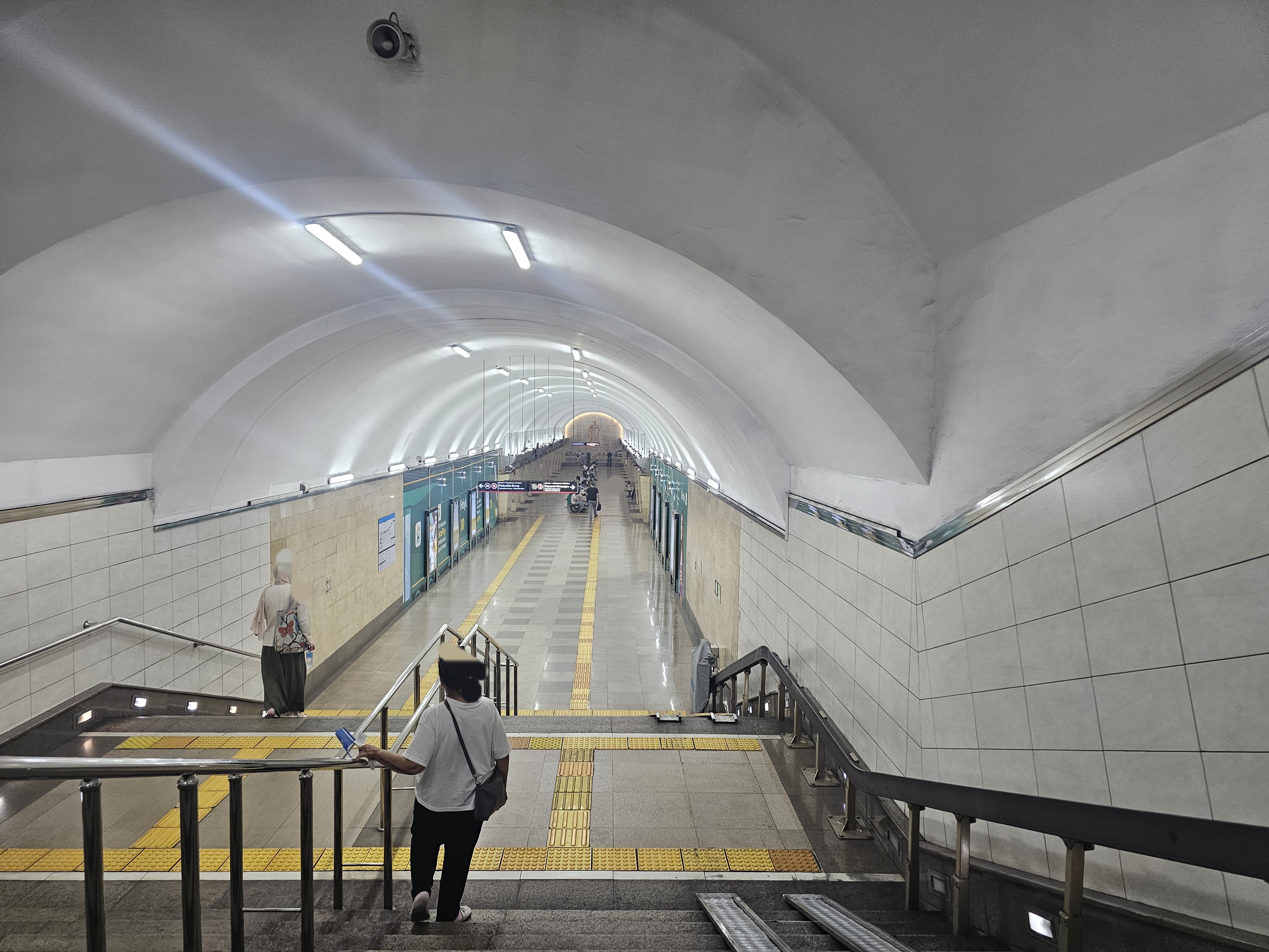 에스컬레이터를 타고 내려간 뒤에도 쭉 걸어갑니다.