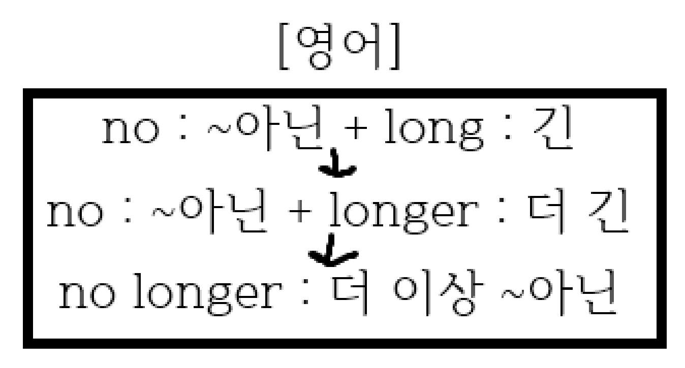 '어떤 상태가 지속되는 시간의 길이에 이전보다 더함이 하나도 없는->어느 한 시점에서 그 시간적 선이 더 길어지지 않게 된->어느 한 시점에서 그 시간적 선이 끊어져버린->더 이상 ~아닌'이라는 의미 변화를 거치며 no longer이란 부사구가 나타납니다.