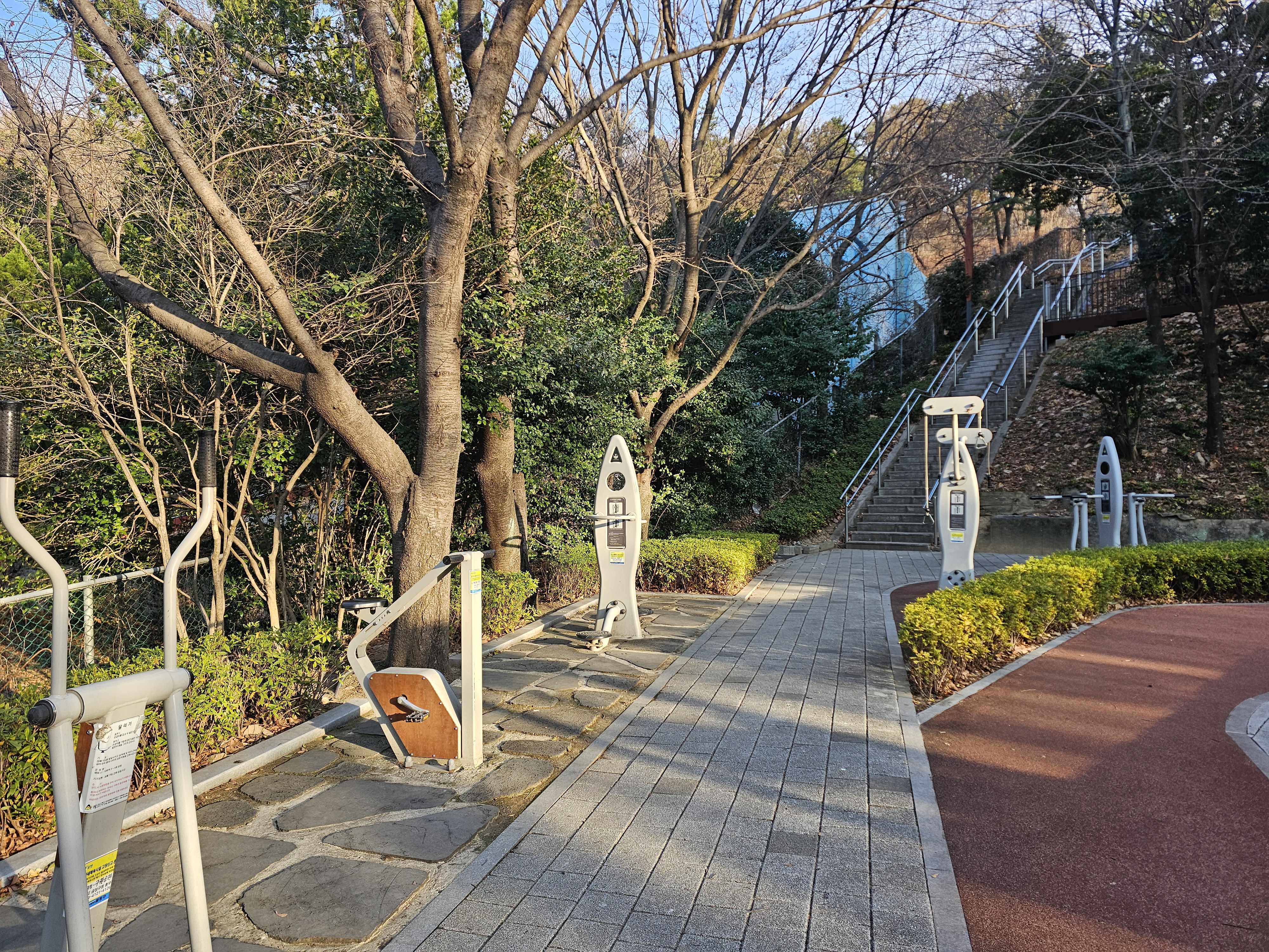 계단을 올라가면 먼저 파고라쉼터가 보입니다. 이곳을 중심으로 순환산책로가 있구요.